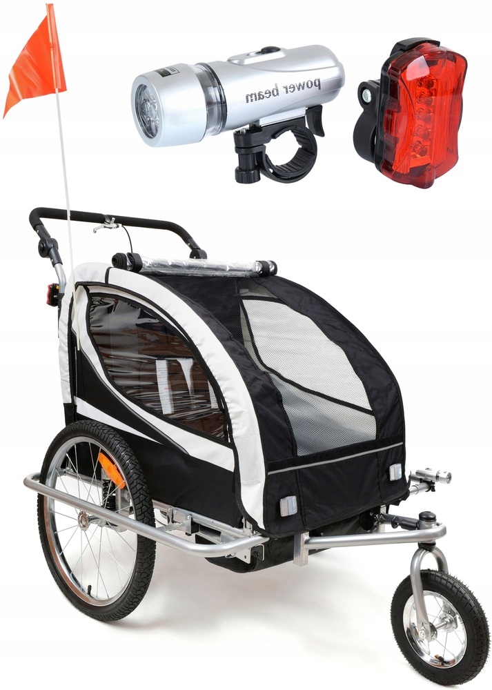 PRZYCZEPKA ROWEROWA 2 OSOBOWA Z AMORTYZATOREM PRO OŚWIETLENIE LED CZARNA