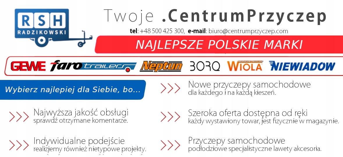 Оплачивая «Przyczepka Samochodowa Niewiadów dł.150 szer 100 burty 39cm RSH», вы можете быть уверены, что данное изделие из каталога «Прицепы» будет доставлено из Польши и проверено на целостность. В цене товара, указанной на сайте, учтена доставка из Польши. Внимание!!! Товары для Евросоюза, согласно законодательству стран Евросоюза, могут отличаться упаковкой или наполнением.