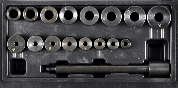 Набір містить 8 конусних адаптерів для диска зчеплення та 8 адаптерів для колінчастого вала. Усі елементи набору виготовлені з високоякісної хімічно оксидованої сталі.