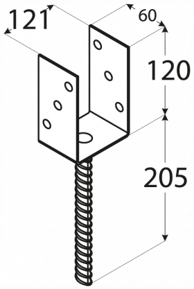Базова модель зануреної колонної основи. Полегшує встановлення дерев’яних елементів на бетон, забезпечує відповідне розширення деревини від землі.