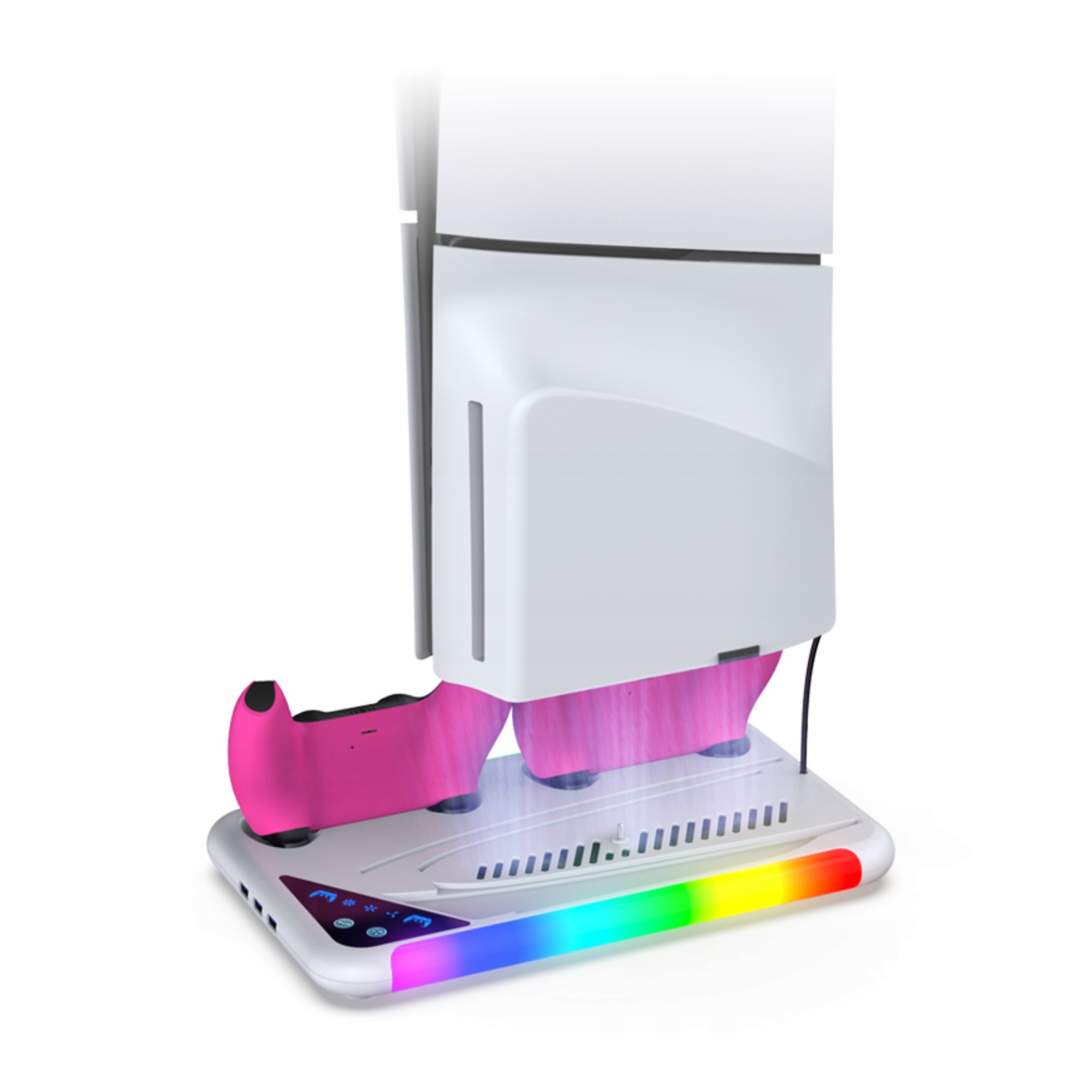 Наша сучасна док -станція для PS5 поєднує функції дисипації тепла та зарядки, , пропонуючи користувачам всебічне рішення. Оснащений точною системою управління мікропроцесором, гарантує високу ефективність та стабільність як під час зарядки, так і охолодження. Завдяки незалежним індикаторам світла, ви можете легко стежити за станом зарядки двох контролерів PS5. побудований -в охолоджувальному блоці з можливістю регулювання трьох швидкостей та функція пам'яті налаштувань забезпечує оптимальне охолодження консолі, а підсвічування створює унікальну атмосферу під час гри.