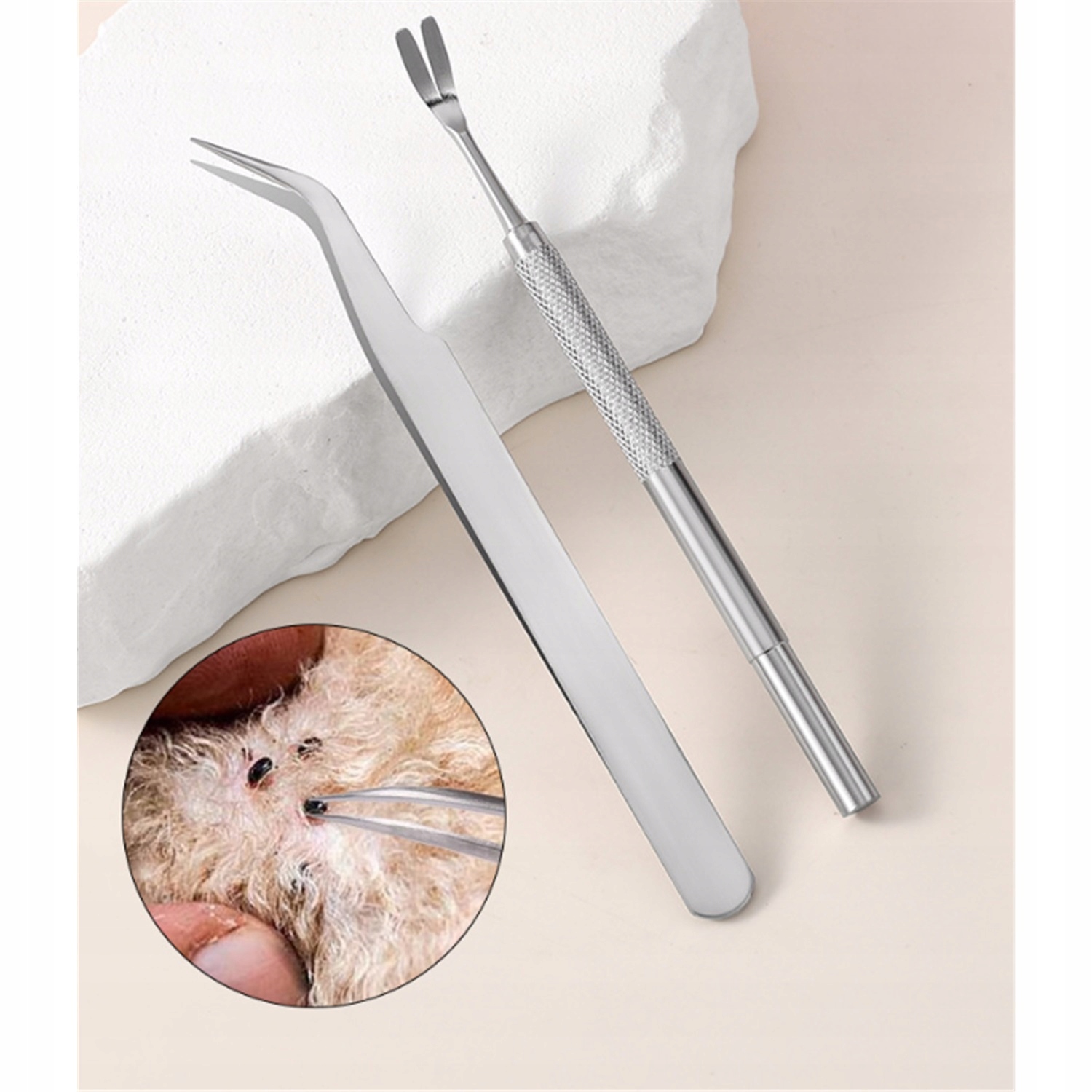 · Двосторонній пінцет — для видалення менших кліщів, захованих у шерсті
