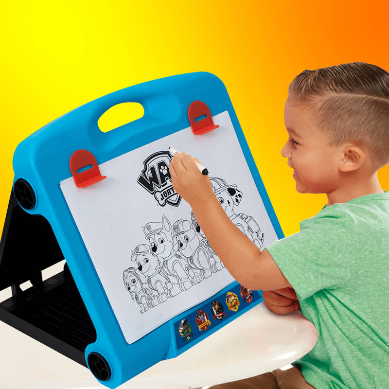 Якщо ваша дитина бере з собою багато приладдя для малювання в кожну подорож, у нас є чудове рішення. Подорож настільний мольберт Щенячий патруль у вигляді валізи з необхідними аксесуарами.