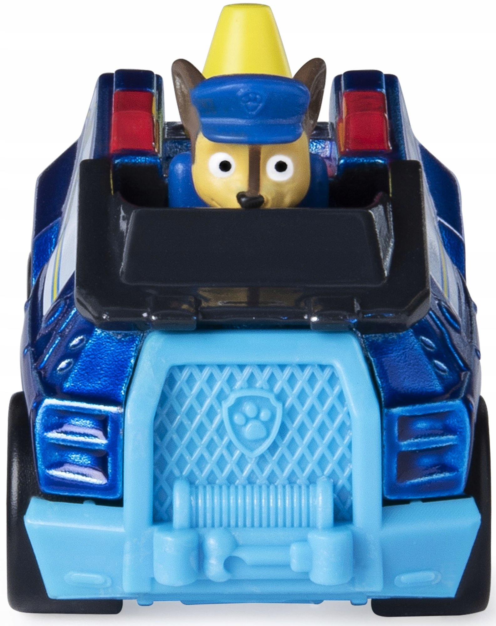 Металева поліцейська машина Чейза, прикрашена емблемою героя фільму, обертові колеса з пластику. Кожен автомобіль має фігурку собаки, фігурки не можна зняти.