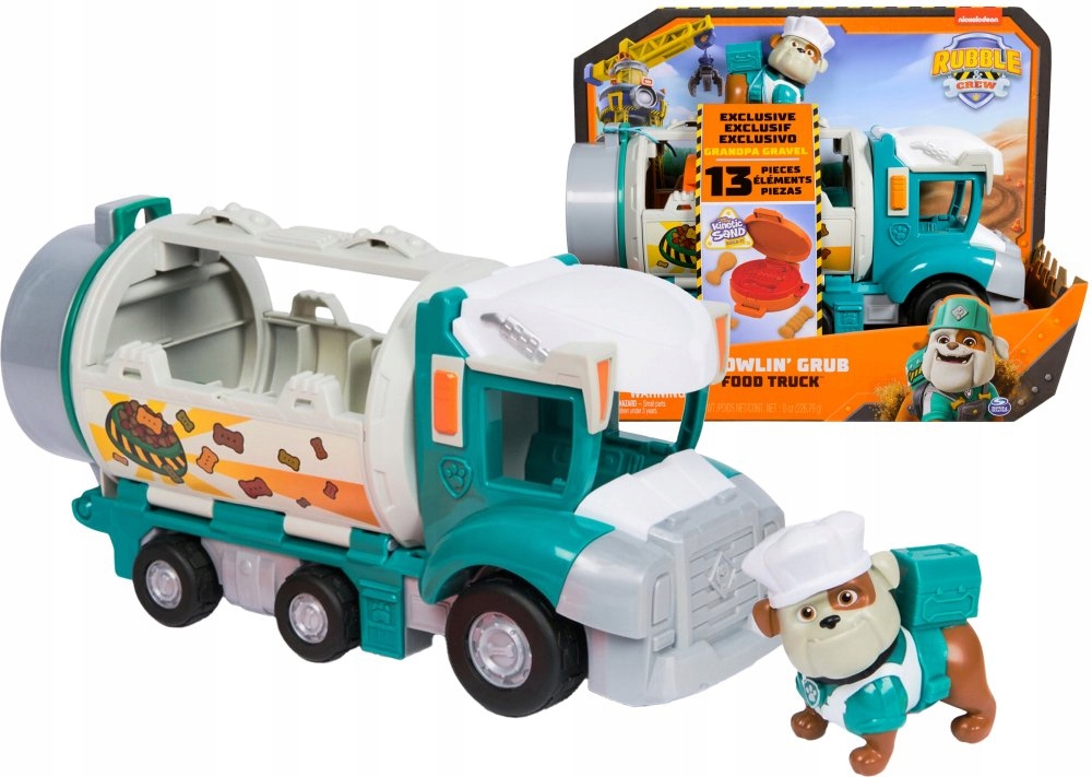 🍕 PSS Patro Food Truck - Cook, побудуйте та розважайтеся з дідуським гравієм! " в будівництві та приготуваннях ! Пісок , завдяки якому ваша дитина створить дивовижні страви та конструкції. Один - Відкриття дверей, переміщення колеса та місця для аксесуарів роблять задоволення ніколи не закінчуються! Використовуйте форми, піцу та аксесуари для підготовки іграшок. Він може розвинути свою уяву , вручну навички та провести час у компанії улюблених героїв собака патруль ! 🐾