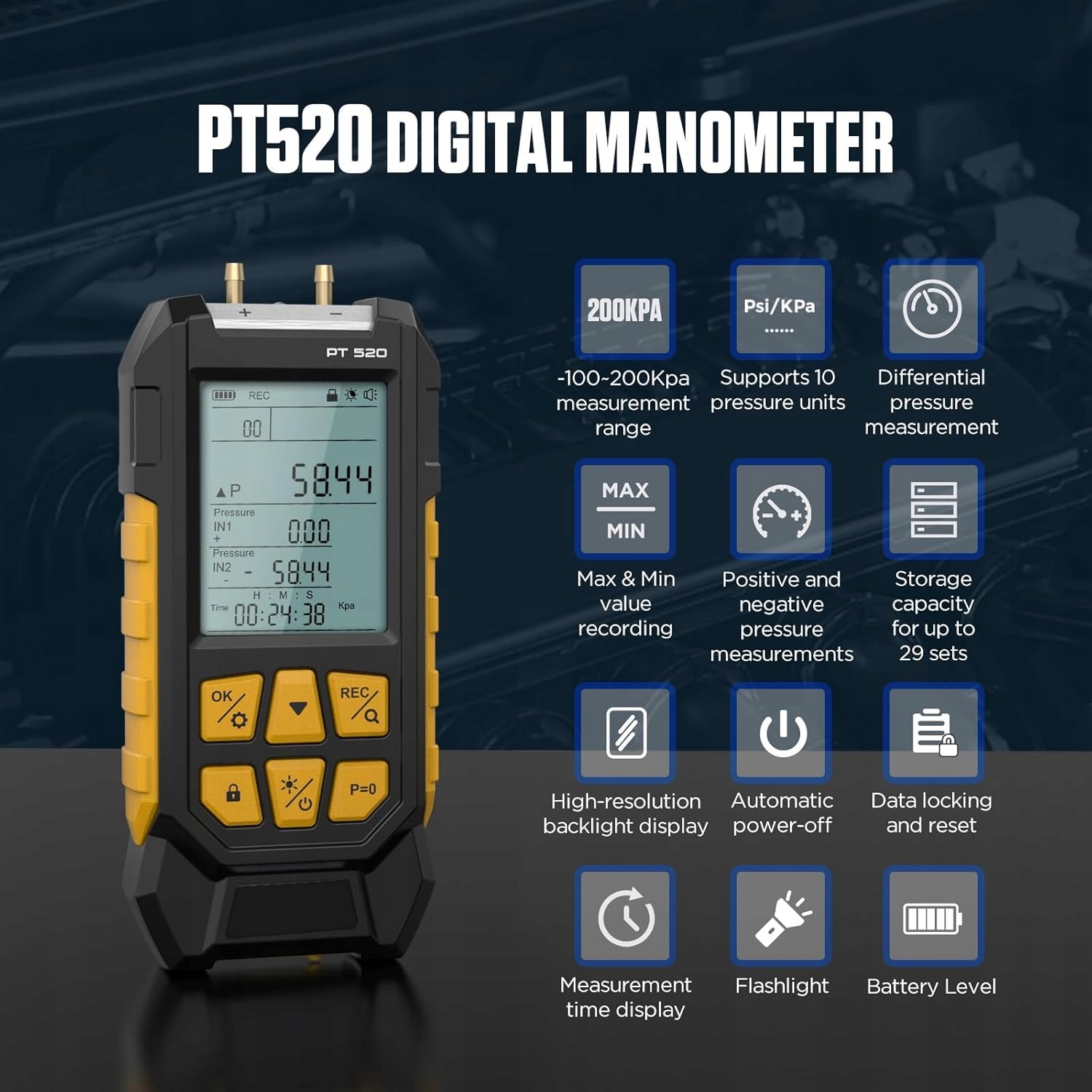 PT520 Цифровий манометр тиску повітря 100-200 кПа роздільна здатність 0,01 тестер HVAC