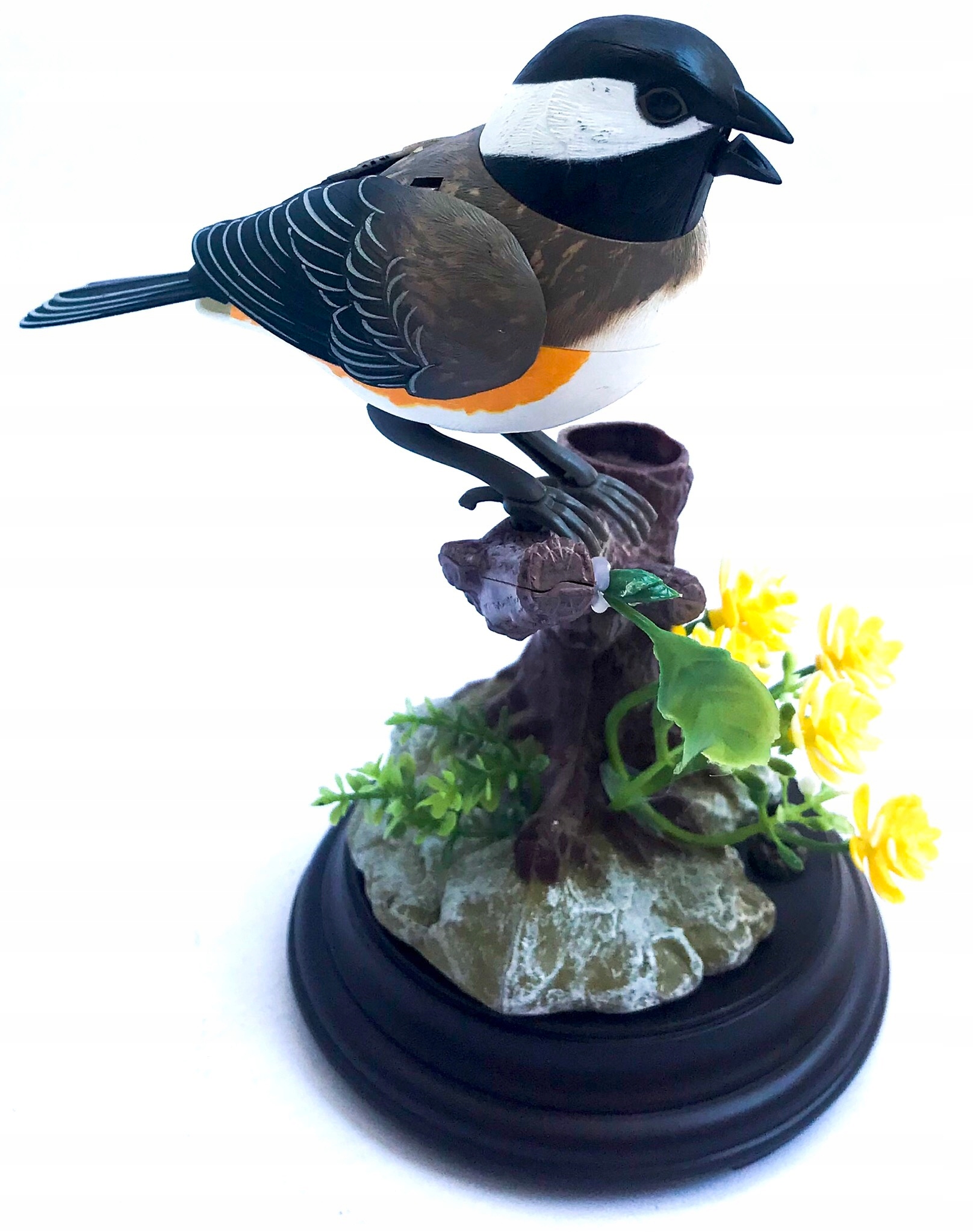 Реагує на дотик і звук. Просто поплескайте або торкніться клітки, і кімната наповниться прекрасним співом птахів. Пташка гойдається вперед-назад, рухаючи дзьобом.