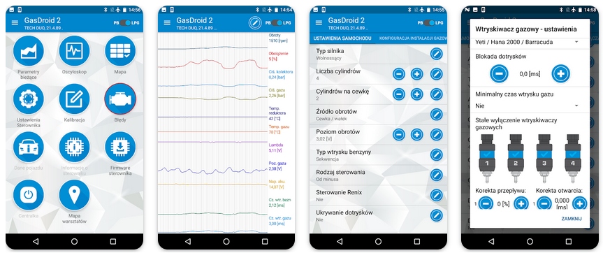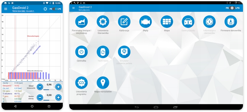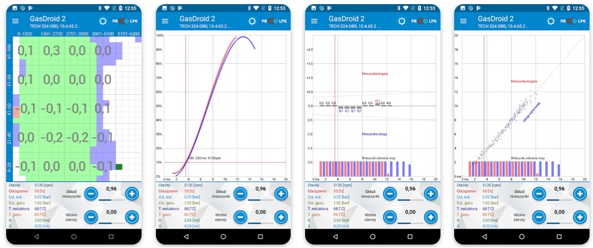 Пропонований інтерфейс забезпечує повну діагностику системи LPG, а також коригування (автокалібрування, карти, температура перемикання, обороти тощо)