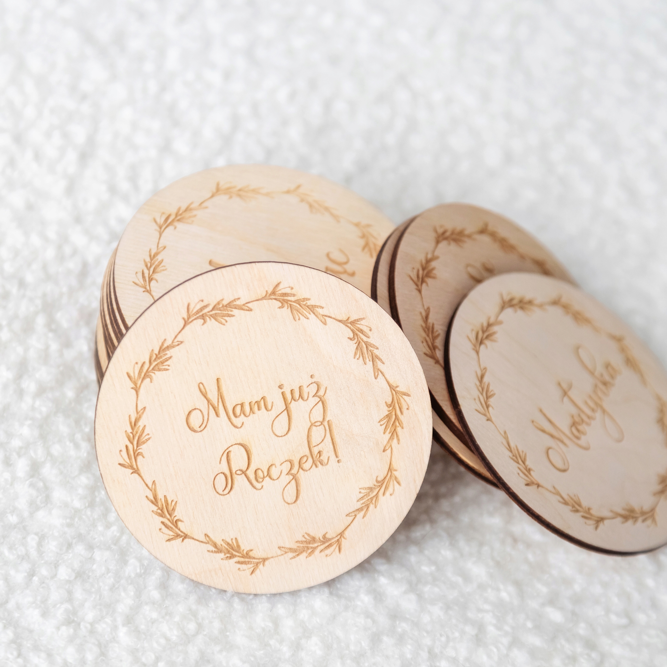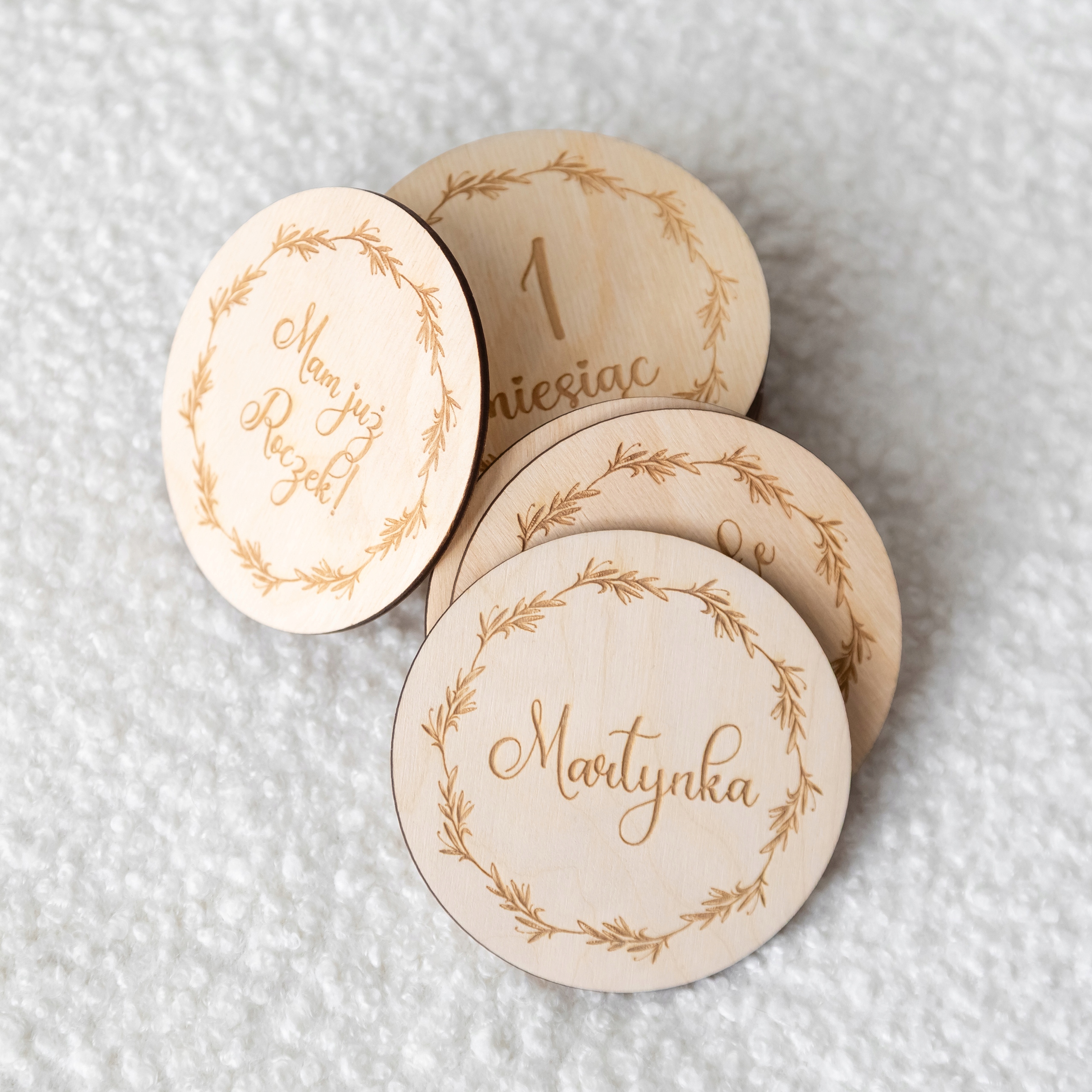 1 x табличка з назвою, 12 -кратна табличка з місяцем життя дитини плюс 3 x додатково з будь -яким текстом: