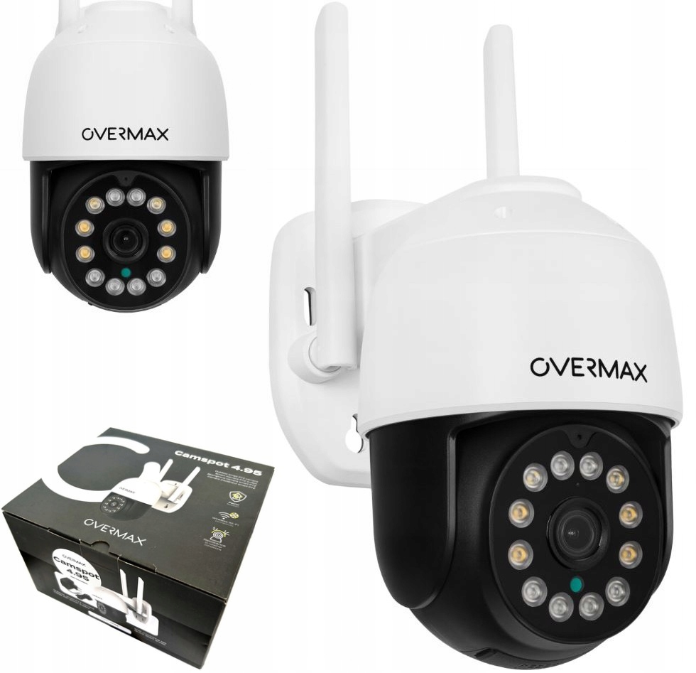 Нова Smart Wi-Fi PTZ камера Overmax CAMSPOT 4.95 WiFi антена 230 В живлення з адаптером WAN / LAN мережевий кабель Шпильки з гвинтами для прикручування до стіни Інструкції інструкція на польській мові. Оригінальна упаковка із серії CAMSPOT