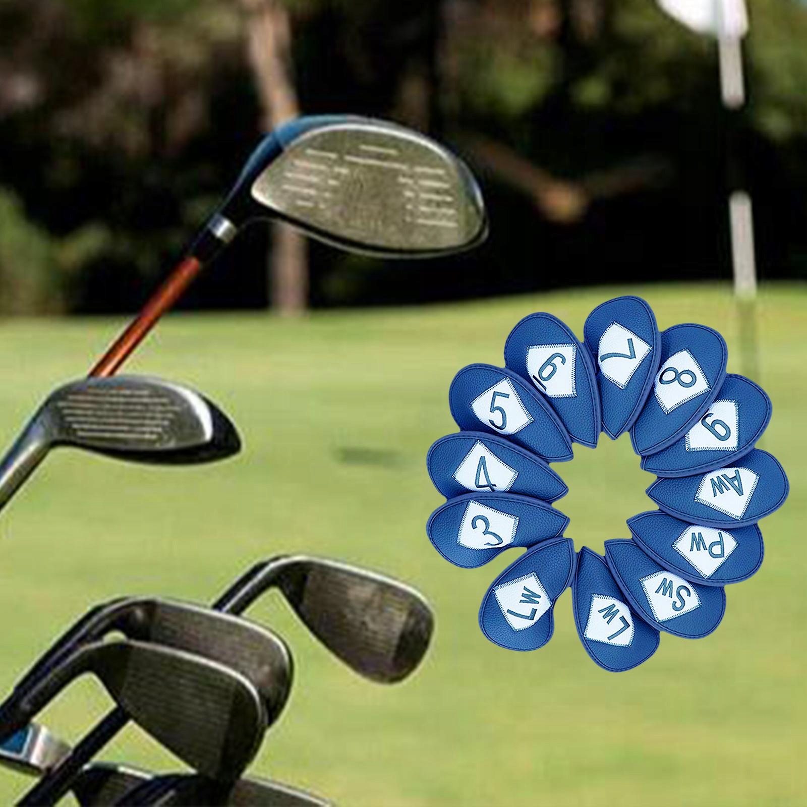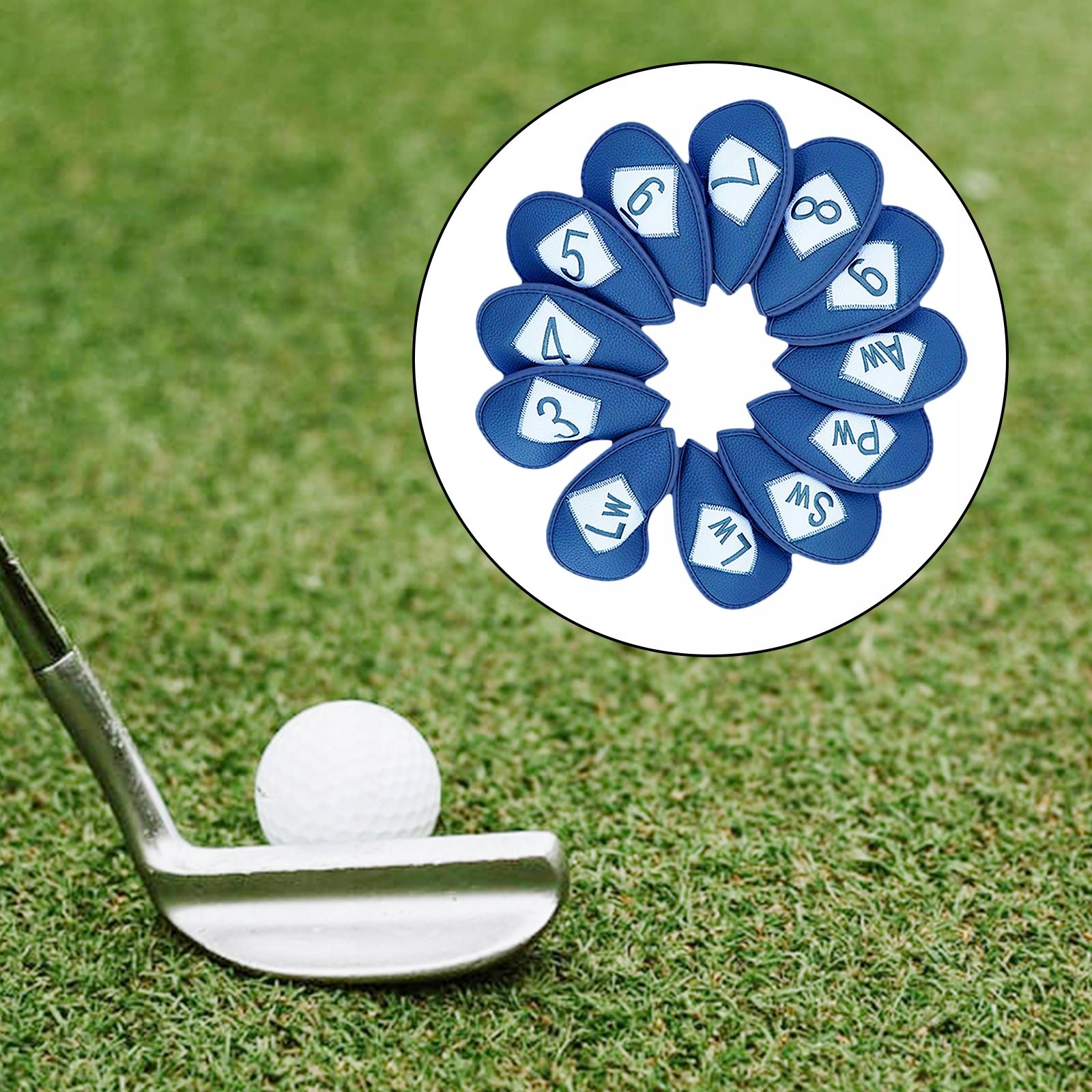 PU Golf Iron Head Covers 12 Pcs 1 Set Lightweight Smooth Fit Sealing Blue