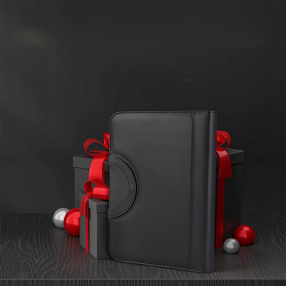 ⬛📝 Включає блокнот на 25 сторінок, калькулятор, ручка, 4 швидкозшивачі, 9 відділень для карток, 10 прозорих кишеньок і 1 бокова кишеню.