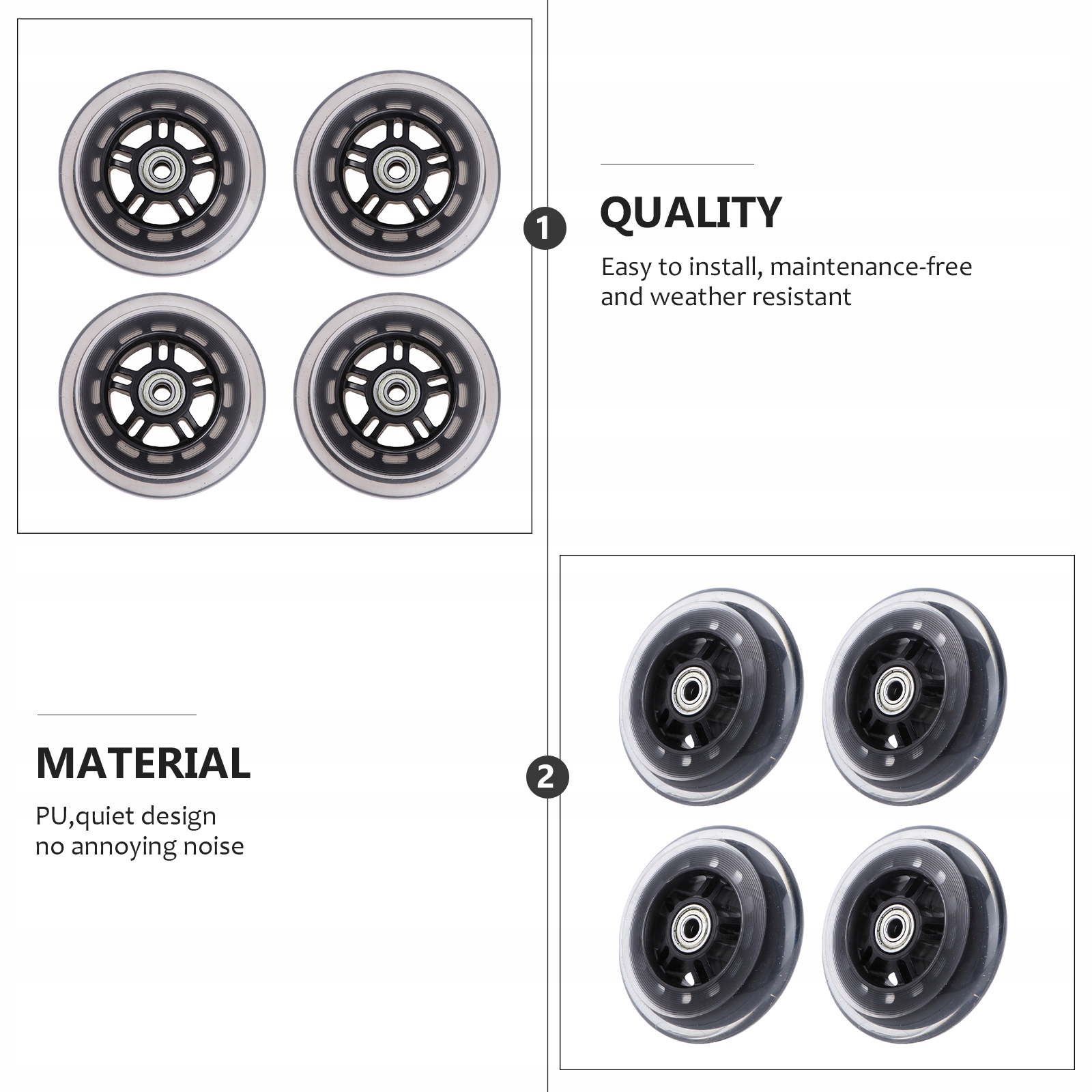 ✅Це 2 пари коліс для самоката, практичних, міцних і корисних. Це професійне PU колесо з високою еластичністю та високою зносостійкістю, високою зносостійкістю та хорошою стабільністю. І це ідеально підходить для повсякденних занять спортом.