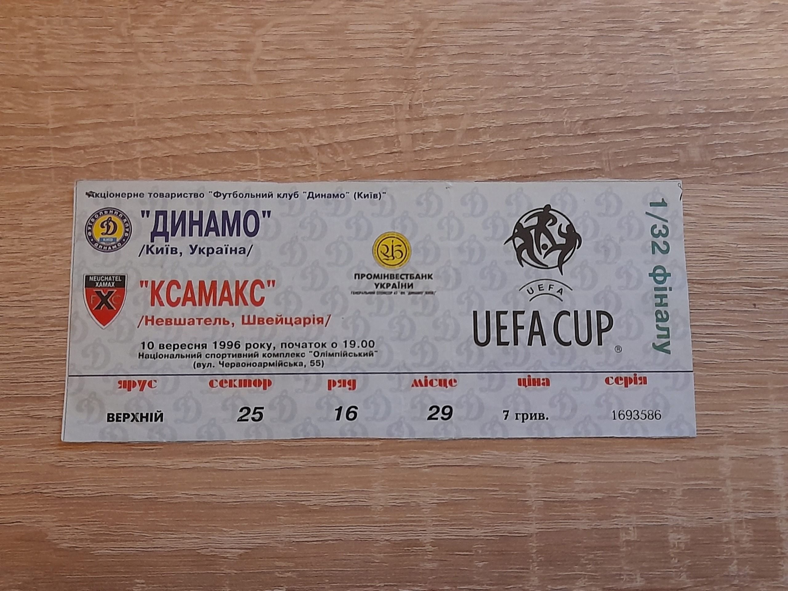 Дуже хороший стан. Кубок УЄФА, 1996. Крім того, я додаю ще 2 футбольні квитки.