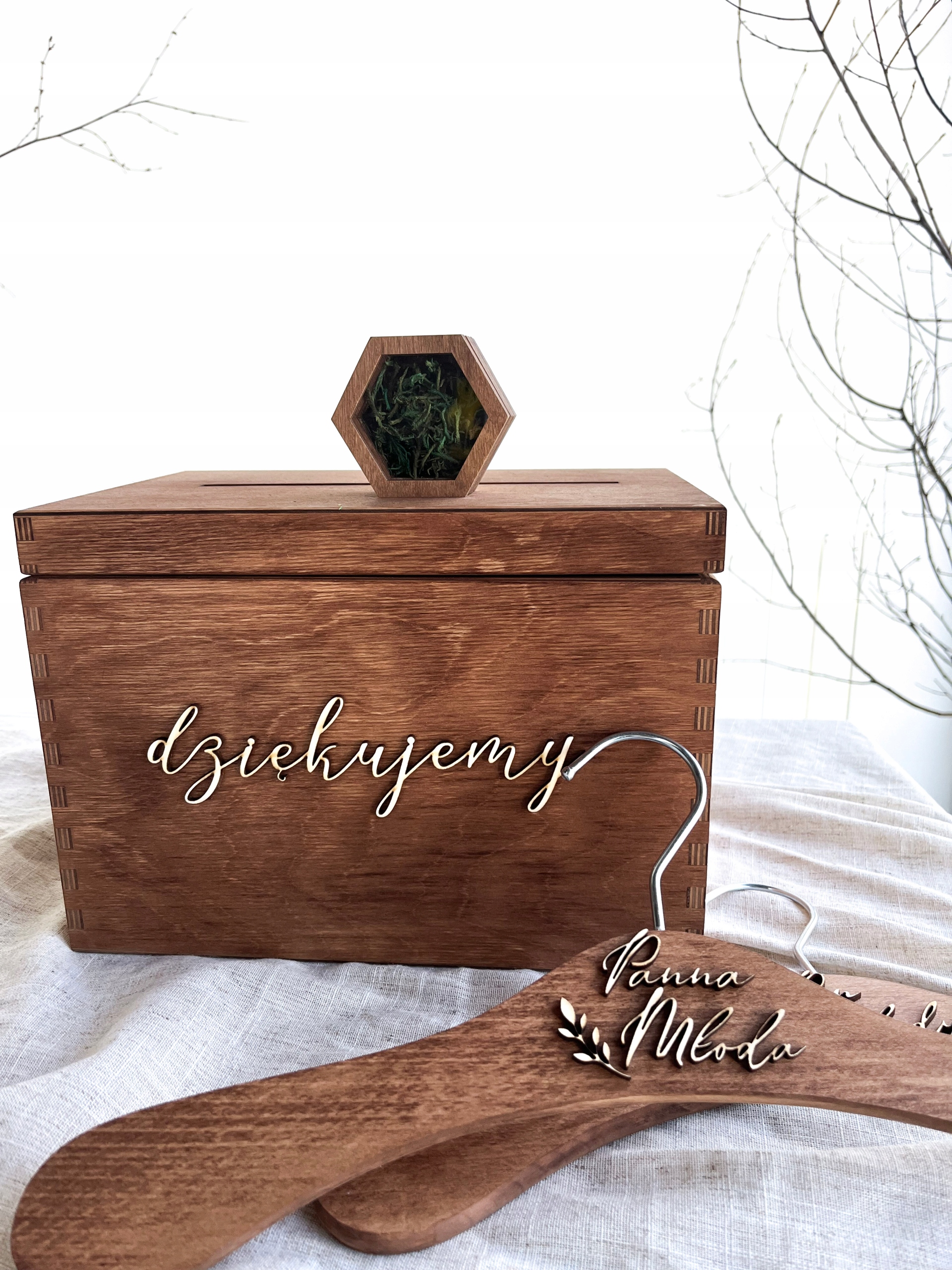 Pudełko, szkatułka na obrączki heksagon z inicjałami, grawerowane, na ślub
