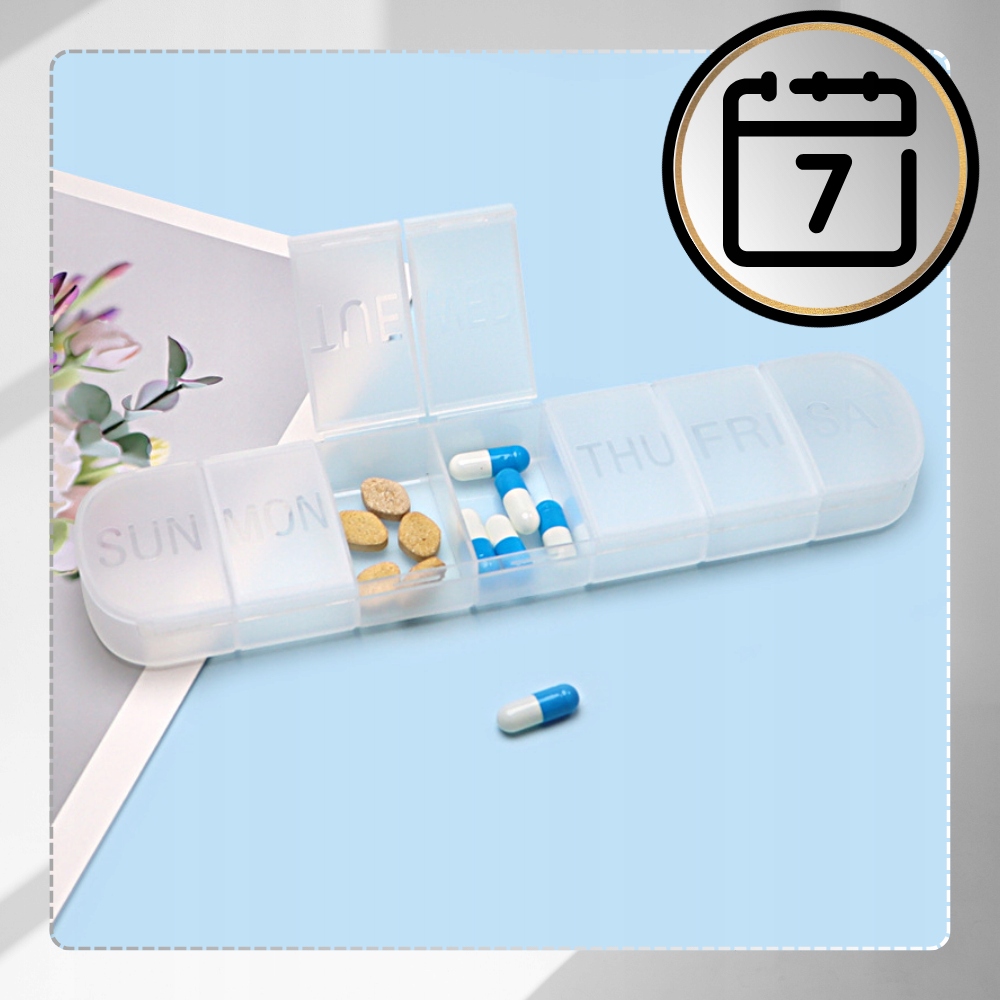 Pudełko 7 dni wąski organizer tygodniowy na leki tabletki pojemnik kasetka