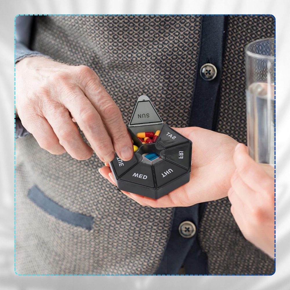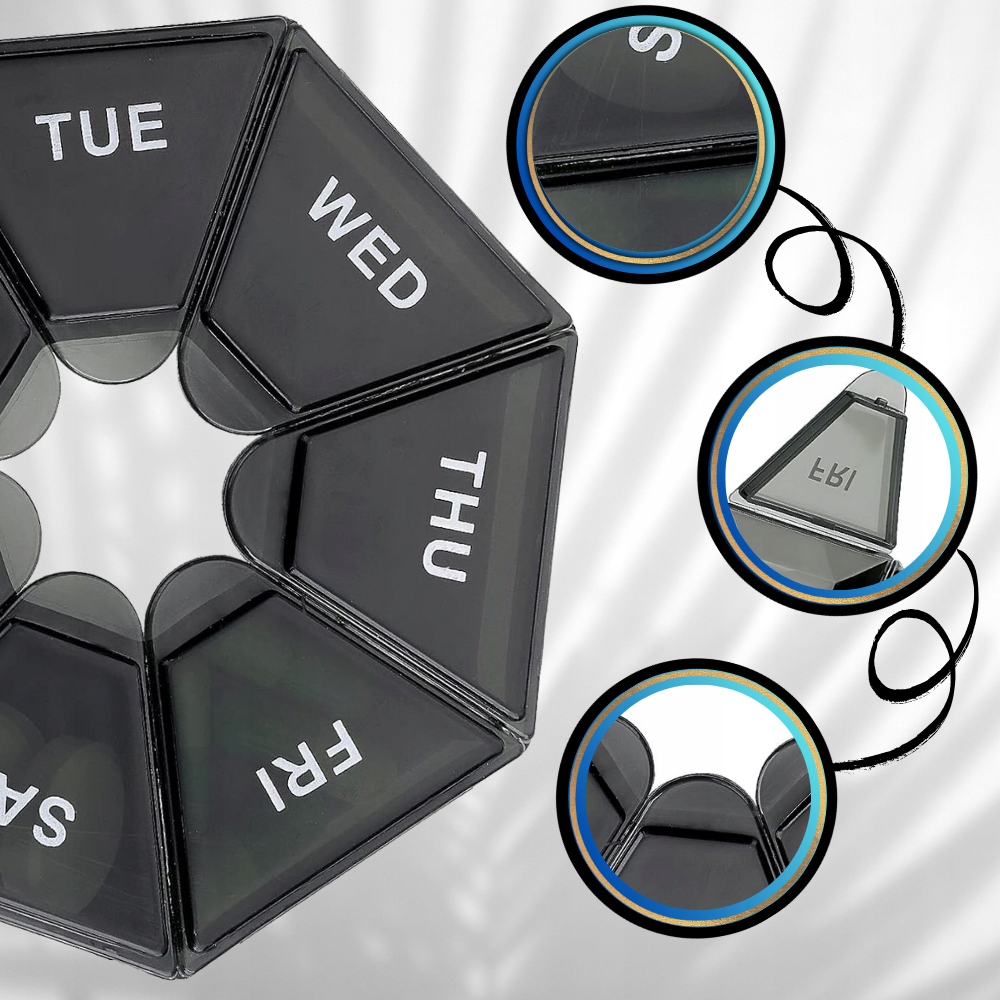 Pudełko koło organizer tygodniowy na leki tabletki 7 dni pojemnik kasetka
