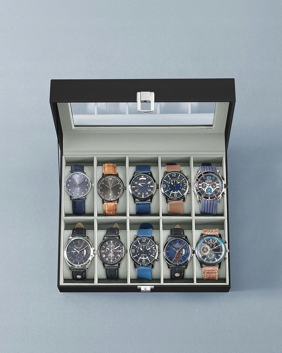 PUDEŁKO NA ZEGARKI MĘSKIE SZKATUŁKA ELEGANCKA ORGANIZER ETUI NA 10 ZEGARKÓW