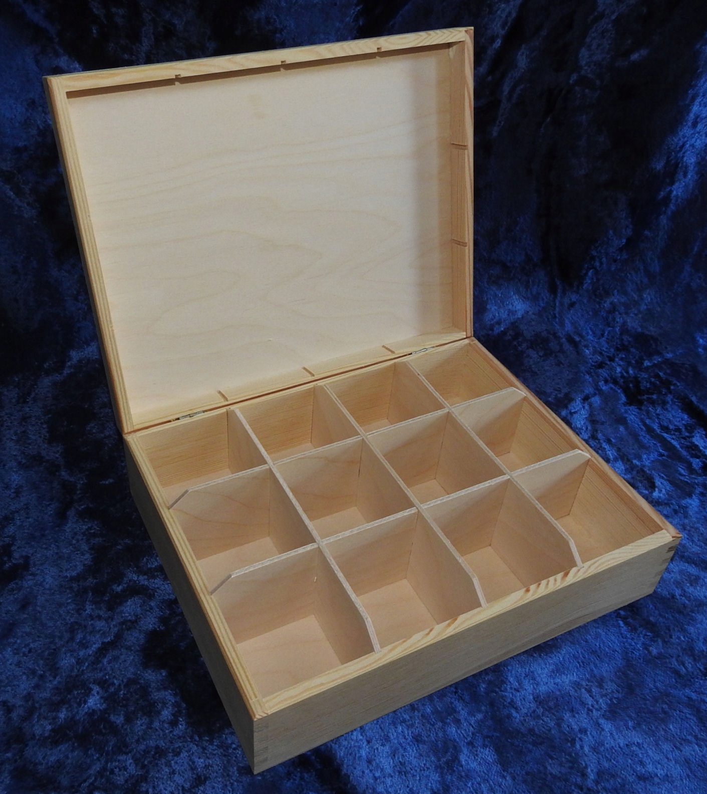 PUDEŁKO ORGANIZER SKRZYNKA DREWNIANA NA DROBIAZGI 12 PRZEGRÓDEK JAK NOWE N6