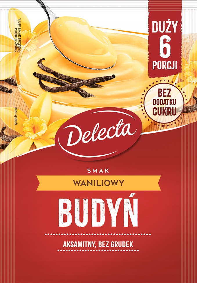 Пудинг Delecta — традиційний десерт, гладкої оксамитової консистенції, з яскравим малиновим смаком, що навіює спогади дитинства. Характеризується надзвичайно насиченим смаком і благородною кремовою консистенцією. Його вже багато років цінують багато польських родин. Ви можете приготувати пудинг в традиційному або сучасному варіанті, додавши сухофрукти або шматочки шоколаду. Ви можете їсти пудинг холодним або теплим - як вам подобається. Ви можете використовувати пудинг як основу для улюбленого заварного крему - незамінного доповнення до тортів. Пудинг – один з найпопулярніших молочних десертів дітей і дорослих. Порції пудингу вистачає на приготування 750 мл десерту – вистачить на 3-4 людини. Пудинг – легкозасвоювана і низькокалорійна закуска. Наш пудинг не містить цукру - ви самі вирішуєте, чим його підсолодити. Ідея для десерту, повноцінного полуденка. Вибирайте самі.