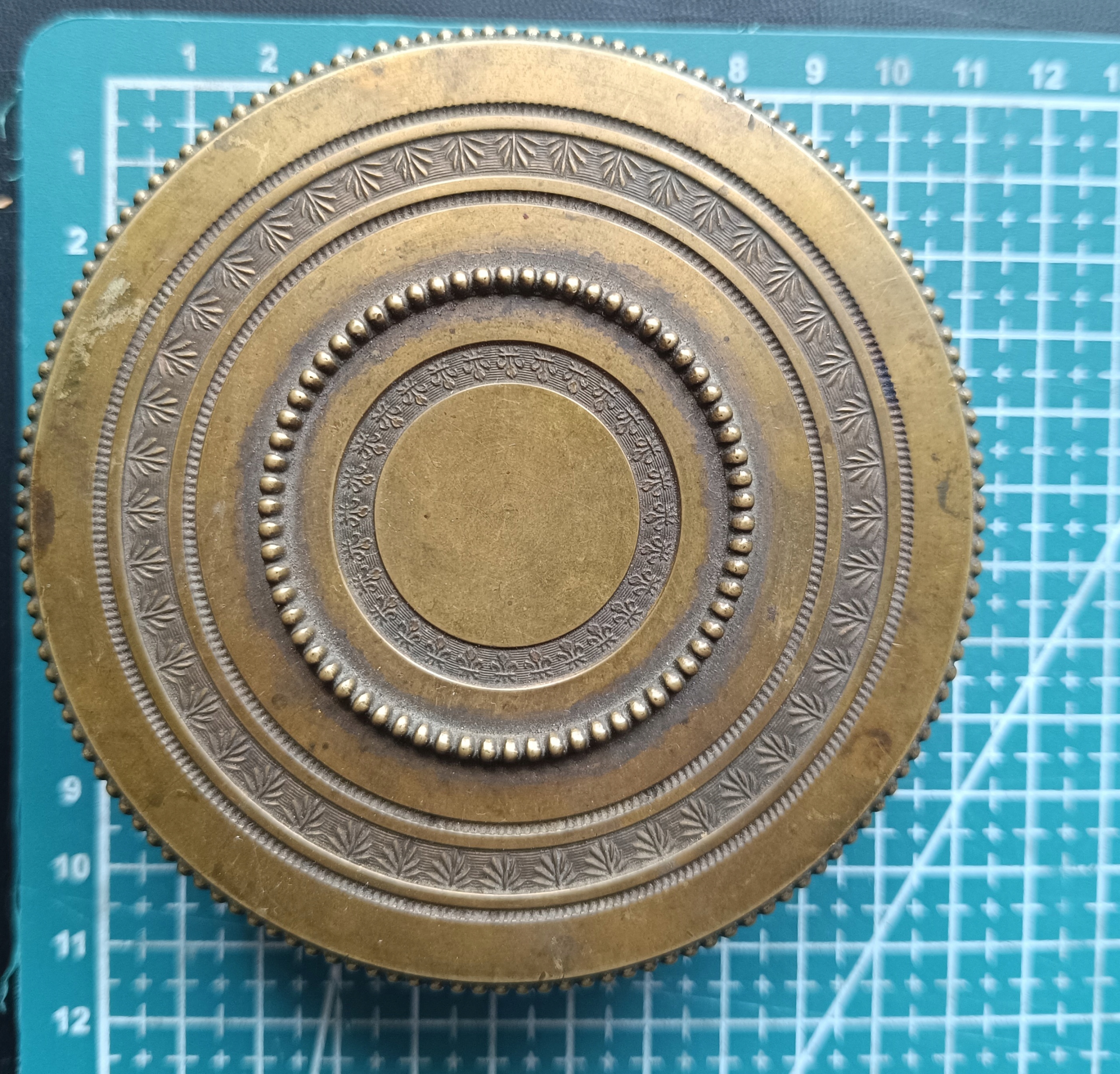 Ми запрошуємо вас придбати коробку, виготовлену Яна Вітке у Варшаві, матеріальні бронзові розміри 3 см шириною 10 см. Як на знімках, які ми оцінюємо як дуже добре.