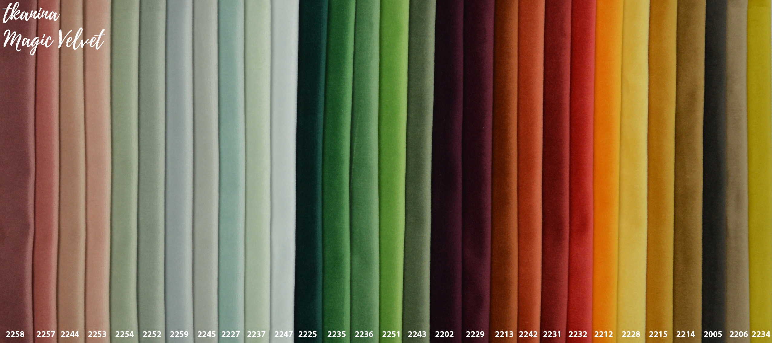 Тканини для оббивки Magic Velvet доступний у 60 кольорах: