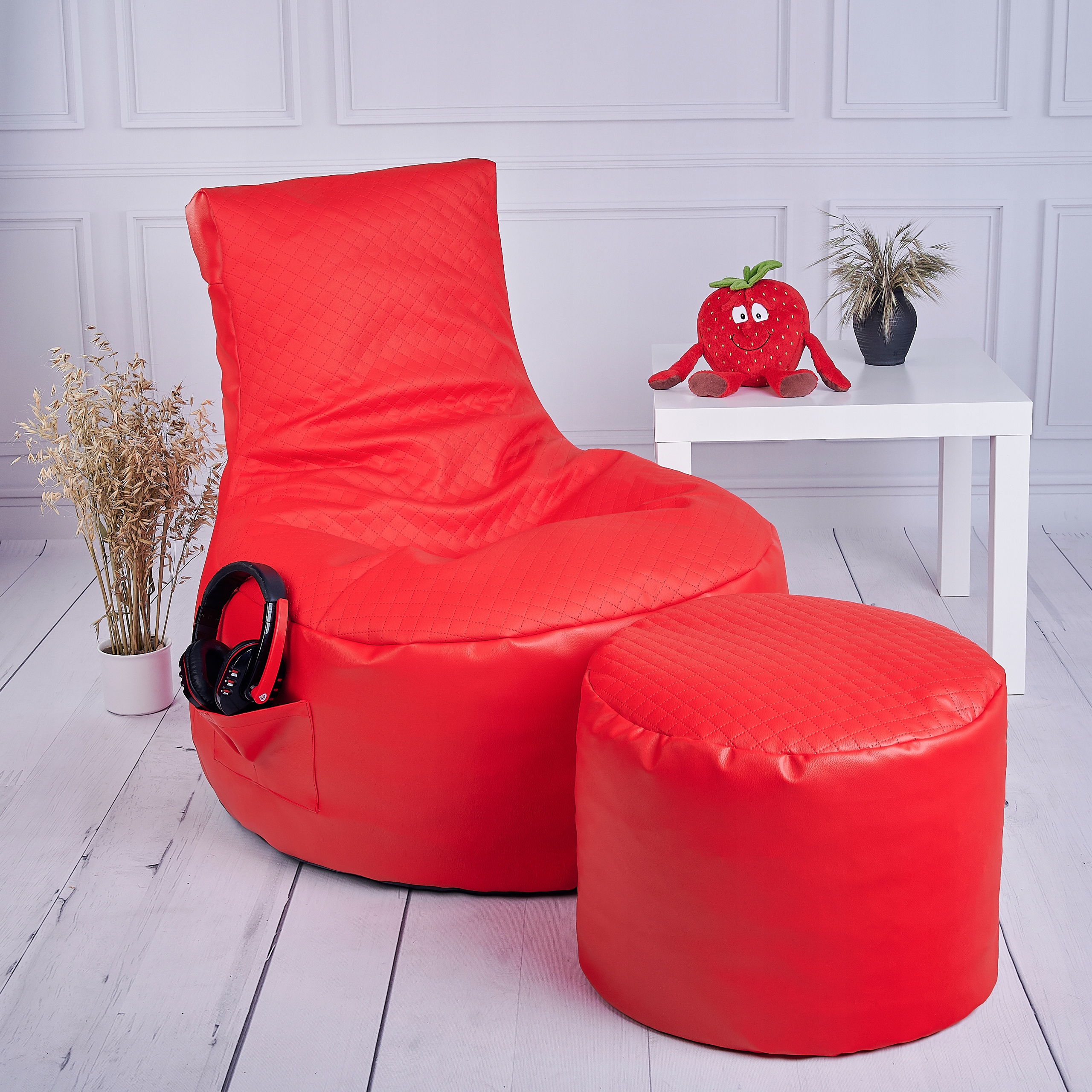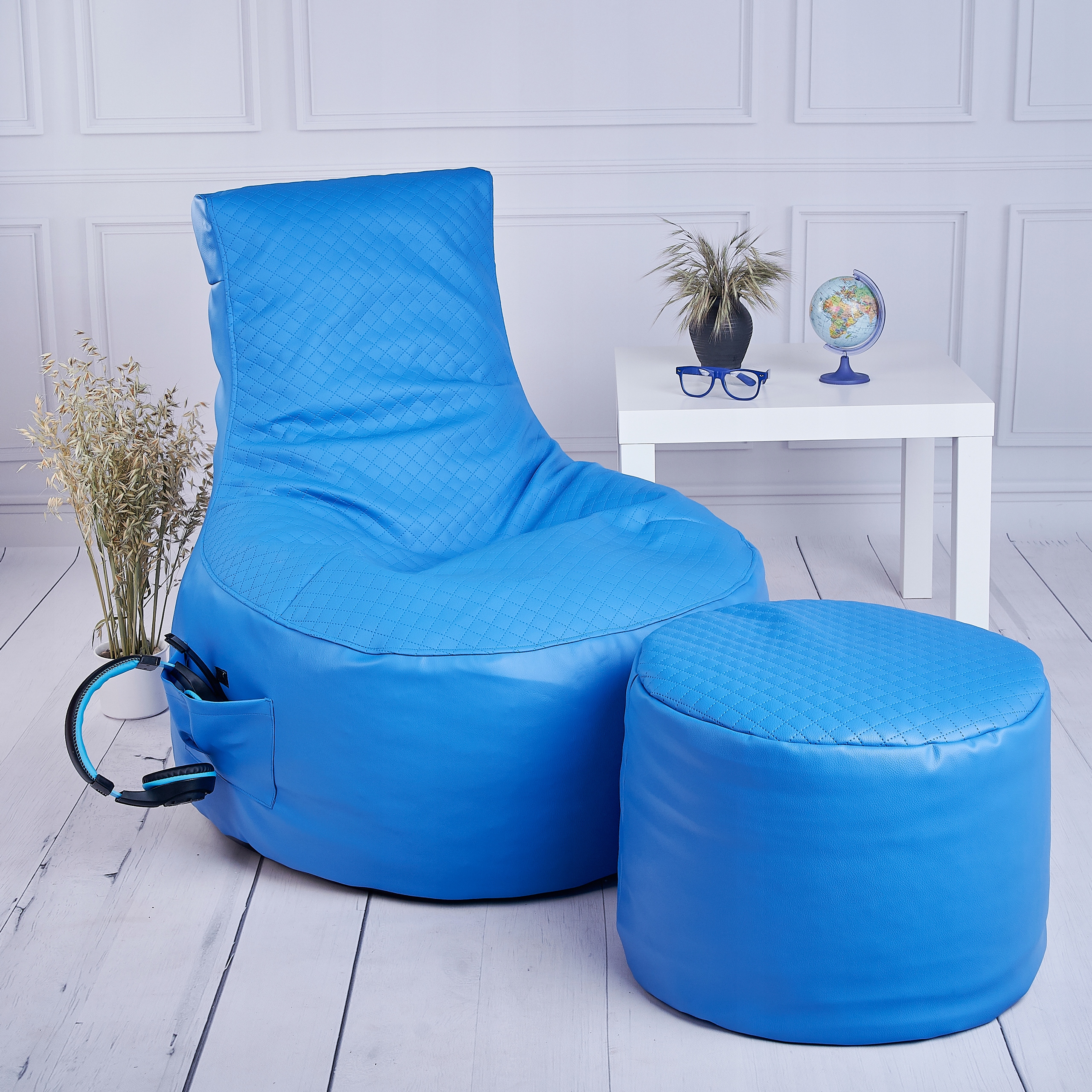 - Міцний стьобаний матеріал у верхній частині пуфа та підніжки