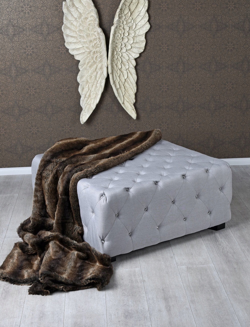 Оригінальний POUF -надзвичайно корисна і цікава -вигляді меблі, яка прикрасить будь -який елегантний будинок. Сидіння Пуф -квадрат у завжди модному та набирає все більш популярності стилю Честерфілда. Сірий Велюр Пуф, на дерев’яній рамі, все сидіння повністю стьобане разом з усіма боками. Він має невеликі чорні ноги, і кожна точка квілінгу закінчена простим металевим заклепкою. Весь виглядає надзвичайно елегантно і є цікавою ідеєю для практичного розташування вітальні чи спальні. Для своєї мети POUF досить великий, але він добре поєднується з іншими меблями в одному стилі і легко переносити, що можна вільно встановити його в різних конфігураціях. Новий продукт, стилізований, повністю відправлений на палітру.