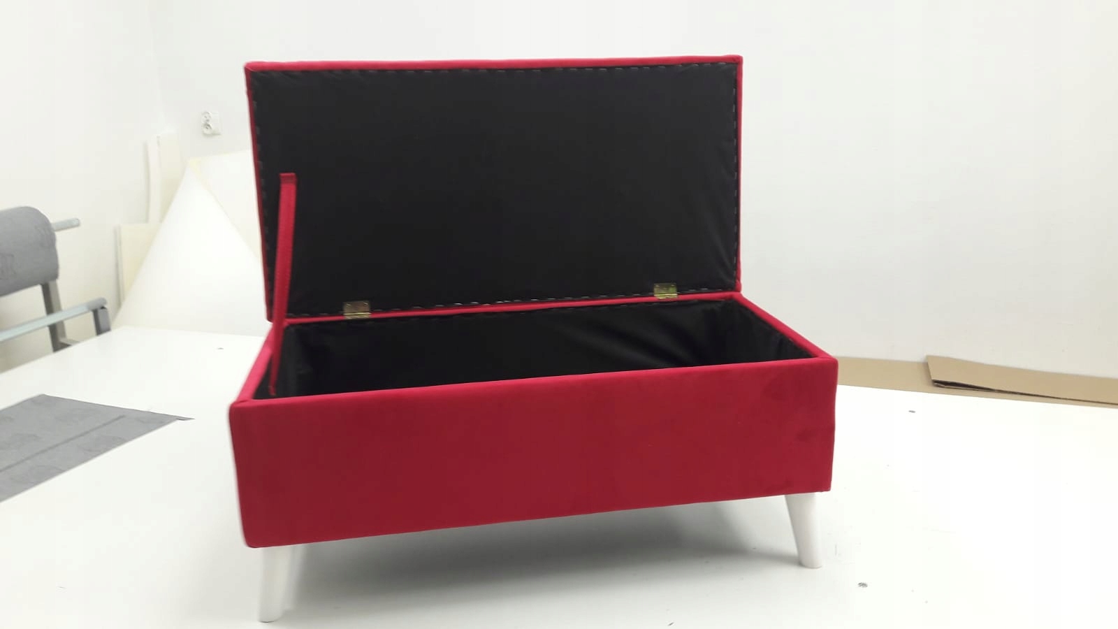 ПУФ МАЄ 4 НІЖКИ, КУТОВІ АБО ПРЯМІ, ДОСТУПНІ В КОЛЬОРІ НАТУРАЛЬНОГО ЧОРНОГО, БІЛОГО АБО КОРИЧНЕВОГО b> (БУДЬ ЛАСКА, ВКАЖІТЬ ІНФОРМАЦІЮ В ПОВІДОМЛЕННІ ПРОДАВЦЮ) ТА ПОЯСОК, ЯКИЙ УТРИМУЄ КРИШКУ. ЯКЩО ІНФОРМАЦІЇ НЕМАЄ, НІЖКИ ВІДПРАВИМО КУТОМ.