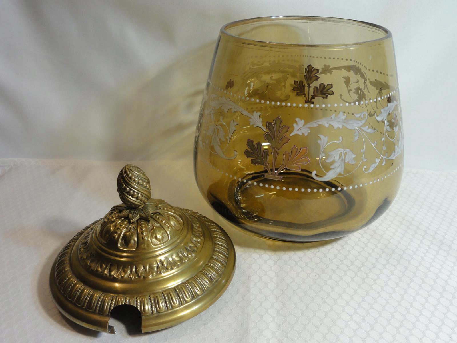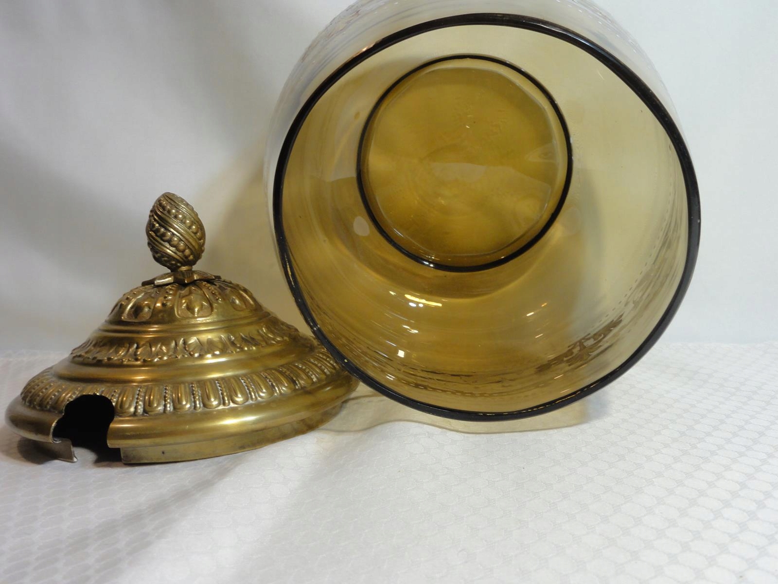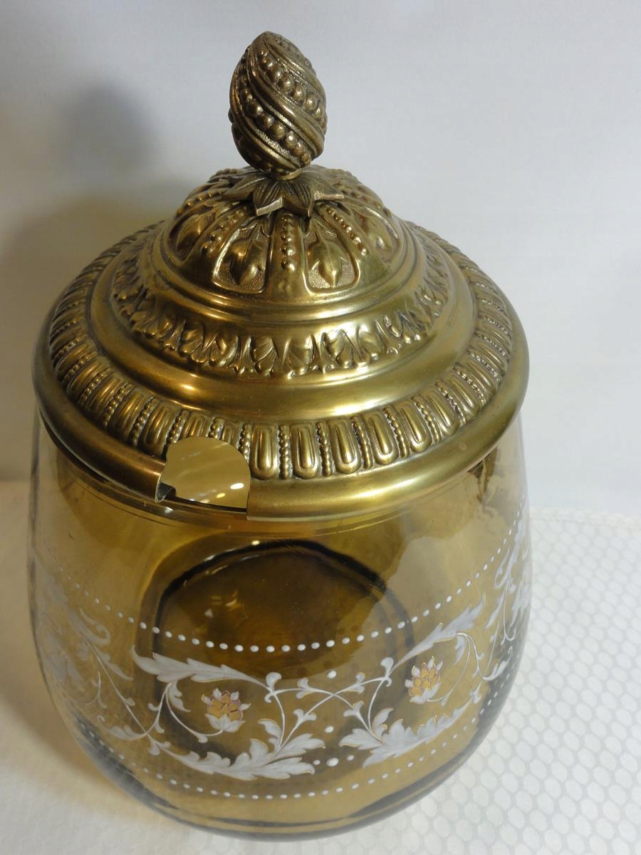 *з масового тонованого скла, пофарбованого емаллю, тип Хеккерта, латунна кришка з багатим орнаментом,