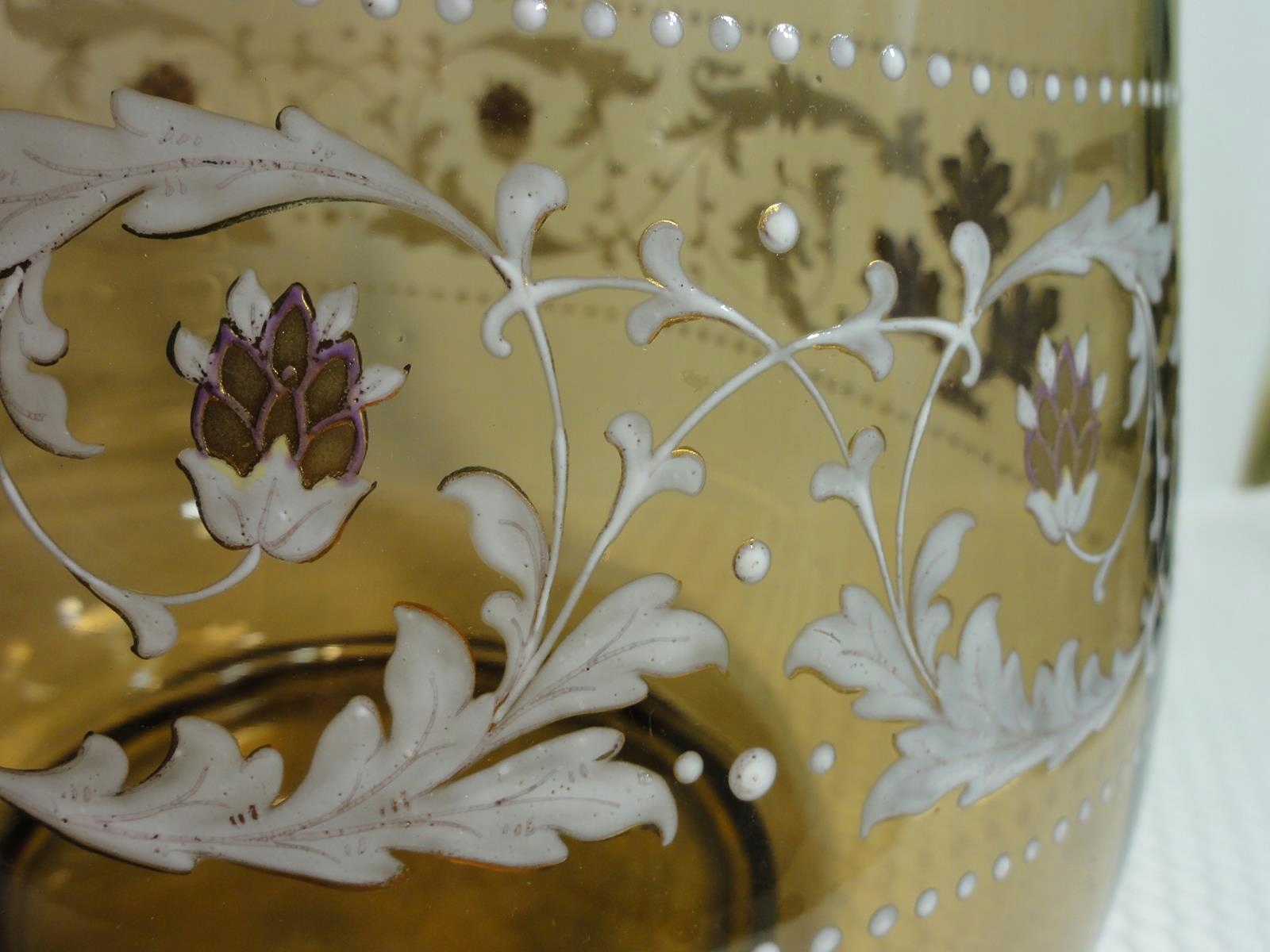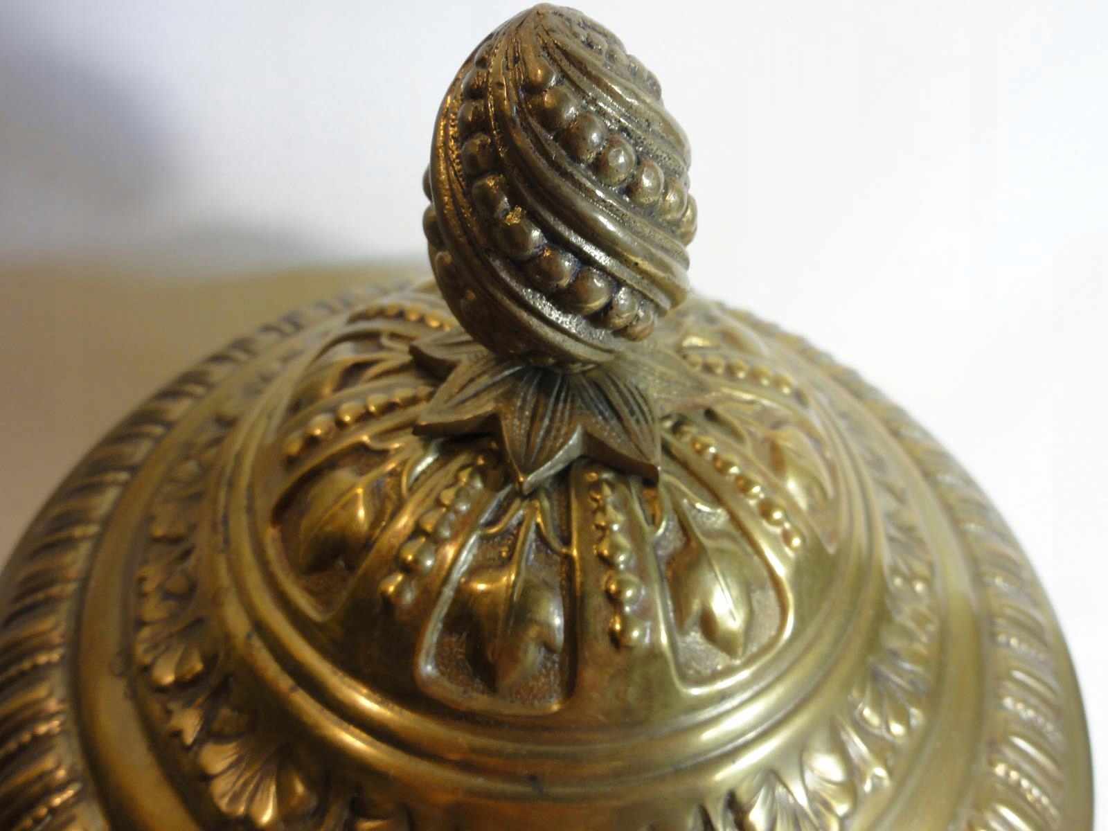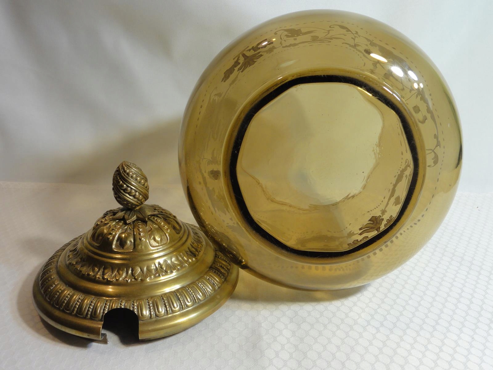 *з масового тонованого скла, пофарбованого емаллю, тип Хеккерта, латунна кришка з багатим орнаментом,