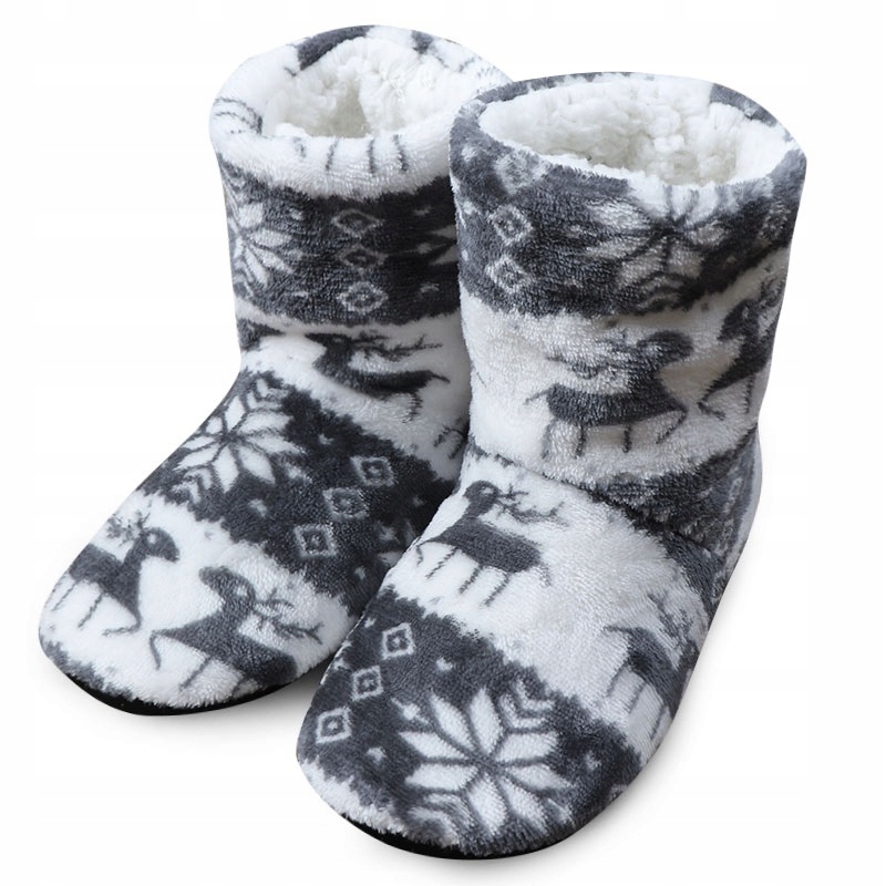 Теплі тапочки / тапочки з новорічним малюнком. Виготовлений з м'якого і приємного на дотик матеріалу. Вони зручні та теплі - ідеальні для холодних днів.