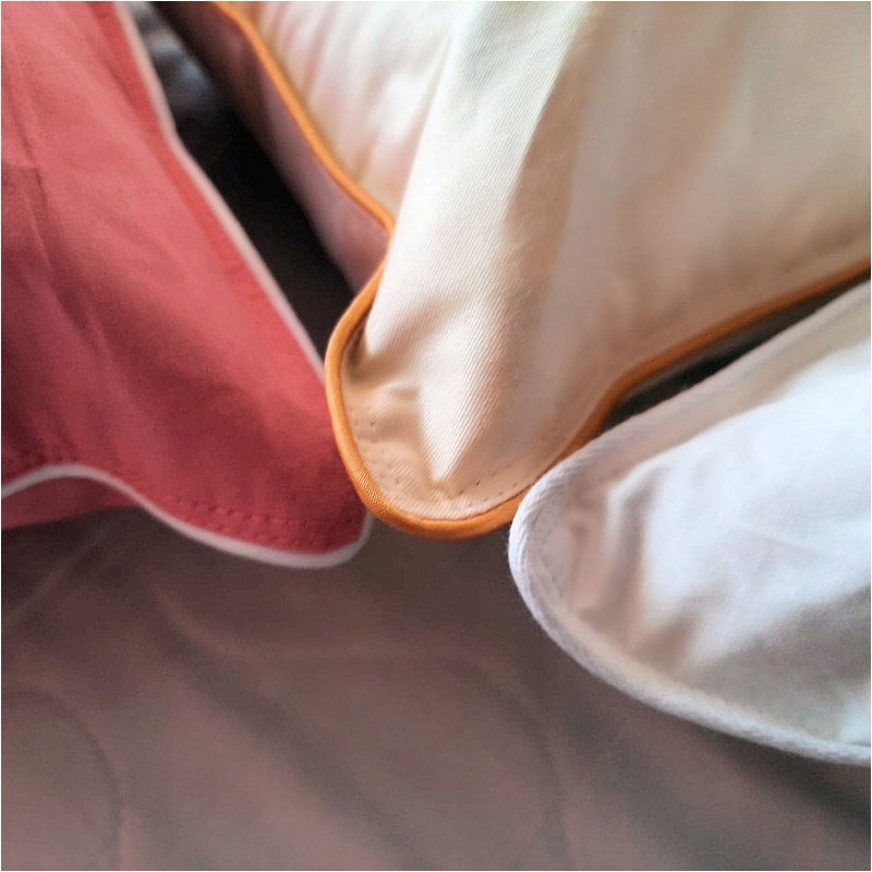 Тканина - високоякісна 100% бавовна, оздоблена декоративною окантовкою - біза. Використана касетна конструкція означає, що пух рівномірно розподілений у кожній решітці та не може рухатися.