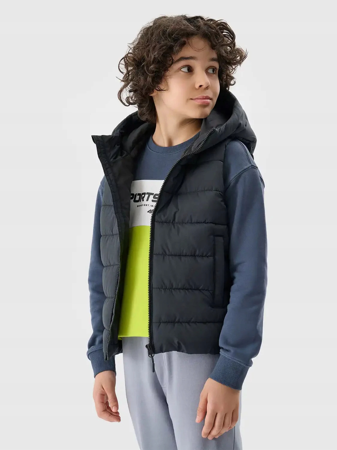 Пухова жилетка для хлопчика - ідеальне рішення для холодних днів, як під час повсякденних справ, так і під час спортивних завдань. Завдяки оптимальному наповненню забезпечує чудову теплоізоляцію, не обтяжуючи користувача, що сприяє комфорту та свободі рухів. Класичне горизонтальне стьобання ефективно захищає від холоду і в той же час дозволяє легко зберігати і транспортувати. Жилетка має практичний капюшон і блискавку спереду, завдяки чому її легко одягнути. Дві бічні кишені забезпечують додатковий простір для дрібниць. Звичайний крій і довжина стегон гарантують зручну посадку та стильний вигляд.