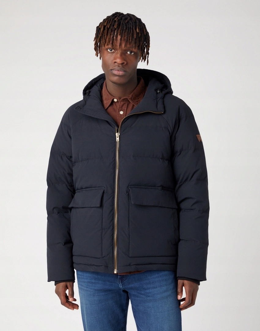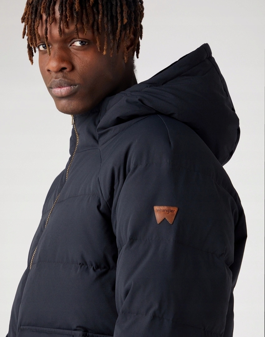 Чоловіча куртка WRANGLER ZIP DOWN JACKET BLACK W40GXX100 112341014 – ідеальний варіант для холодних днів, поєднуючи в собі комфорт і функціональність.
