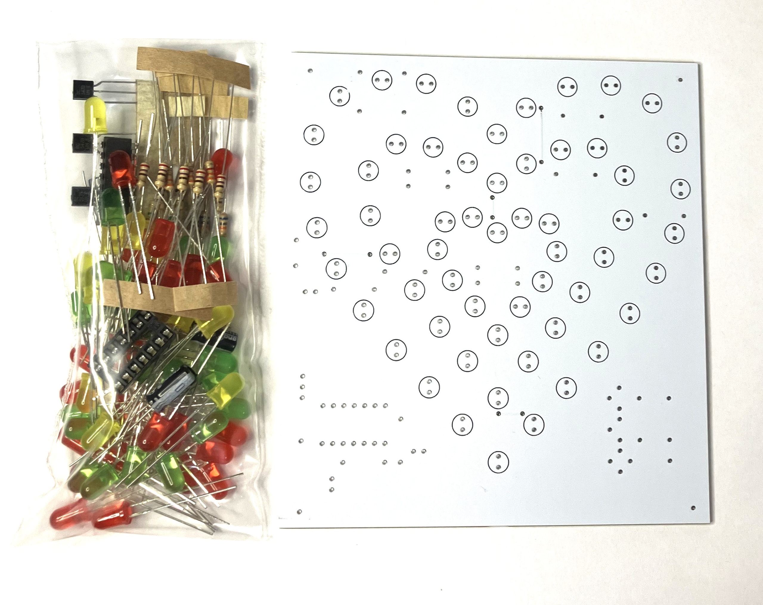 Системи мають схему монтажу, надруковану на платі. Необхідно звернути увагу на полярність у випадку таких елементів, як конденсатори, діоди, транзистори. У світлодіодів довша ніжка плюс +, параметри більшості елементів описані на корпусі. Резистори можуть мати смугове маркування; їх опір і допуск можна прочитати за допомогою калькуляторів, доступних в Інтернеті, або виміряти за допомогою лічильника. Порядок складання, як правило, довільний, залежно від компонування спочатку збираємо найдрібніші елементи.