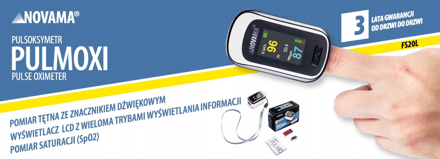 На пульсоксиметр NOVAMA PULMOXI поширюється 3-річна угода від дверей до клієнтів. гарантія на дверцята.