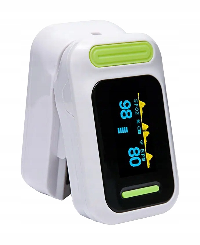 В Крім того, пальчиковий пульсоксиметр автоматично вимикається після 8 секунд невикористання, що забезпечує більшу економію батареї. Прилад має дуже високу точність вимірювань. Результати відображаються в 6 вертикальних і горизонтальних режимах. Пристрій дуже простий у використанні навіть для літніх людей. Просто надіньте його на палець і натисніть відповідну кнопку, і через кілька секунд ви отримаєте результат. Пульсоксиметри особливо рекомендовані людям, які страждають хронічними або рецидивуючими захворюваннями дихальних шляхів, які потребують регулярного вимірювання насичення крові киснем. Допомога також людям, які займаються різними видами спорту, особливо виснажливими, та людям похилого віку.