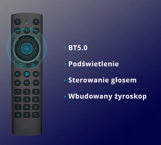 Завдяки вбудованому гіроскопу ми можемо керувати курсором миші на екрані, тримаючи пульт дистанційного керування в повітрі. Крім того, пульт дистанційного керування оснащений функцією голосового пошуку, завдяки якій ми можемо шукати, наприклад, цікаві фільми в пошукових системах, таких як Netflix, YouTube та багатьох інших.
