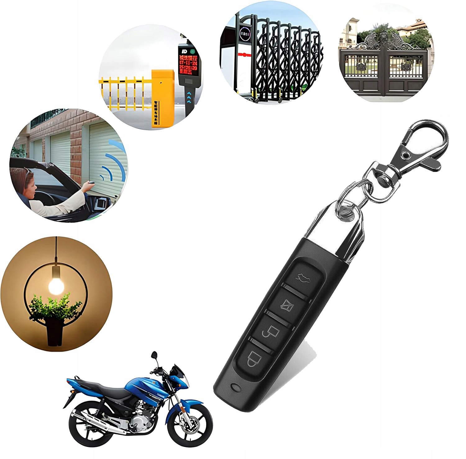 🔑🔑🔑【Креативний дизайн】Автомат відкривання дверей гаража може клонувати до чотирьох кнопок дистанційного керування одного або різних пристроїв і призначати чотири кнопки для відкриття різних ключів дистанційного керування. Таким чином у вас завжди буде під рукою запасний пульт дистанційного керування або ключ, якщо оригінальний загубиться або загубиться.