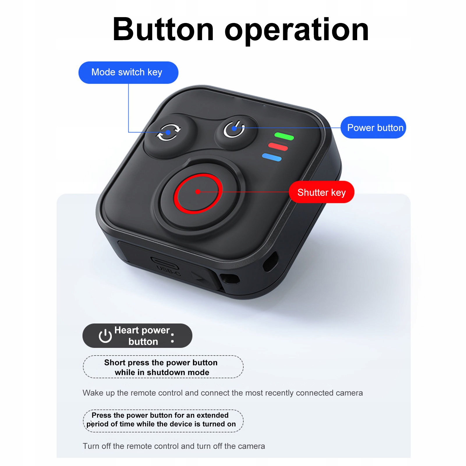 5. Гнучкі варіанти встановлення: насолоджуйтесь універсальним встановленням за допомогою дистанційного керування камерою, яке має універсальні монтажні отвори з усіх чотирьох сторін для горизонтального та вертикального розташування. Наручний ремінь, що входить у комплект, забезпечує комфортне носіння, а також його можна надійно закріпити на палиці для селфі, кермі, кермі тощо. Незалежно від сценарію фотографування залишайтеся легким і комфортним.
