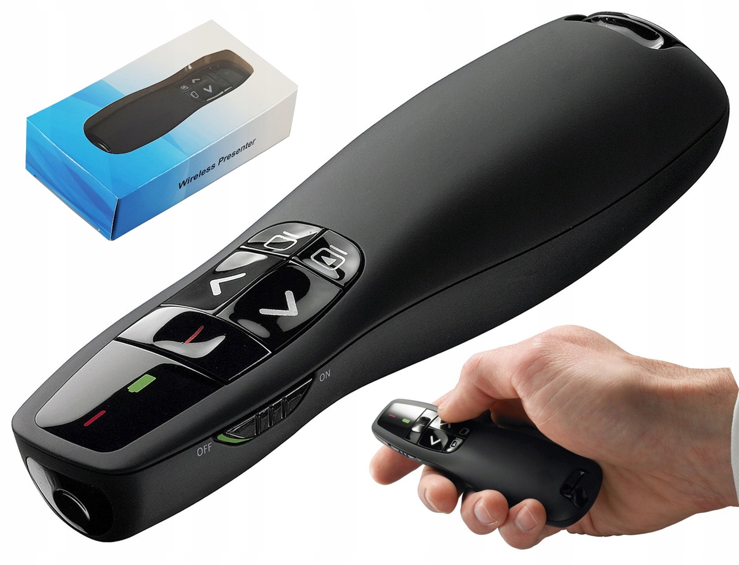 Новий спеціальний пульт дистанційного керування для презентацій Power Point (і інші подібні MS Office та подібні програми для iOS) з лазерною указкою. Маленький, добре лежить у руці, покритий нековзким матеріалом. Просто підключіть доданий USB-приймач (у формі флешки) до комп’ютера чи ноутбука та увімкніть пульт дистанційного керування. Ми можемо віддалено перемикати сторінки, слайди, призупиняти та запускати слайд-шоу.