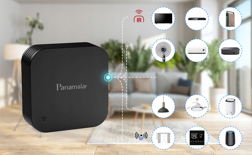 Універсальний концентратор керування WiFi Panamalar — ВСЕ В ОДНОМУ, розумний пульт дистанційного керування для ІЧ- та РЧ-пристроїв, універсальний концентратор керування WiFi, сумісний із Alexa/таймером, автоматизація розумного дому для телевізорів/ламп/кондиціонерів/штор/вентиляторів (1 шт.)