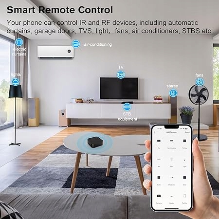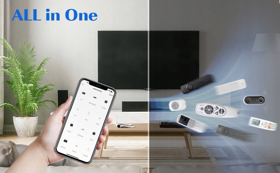- 【ВСЕ В ОДНОМУ】Цей оновлений інтелектуальний пульт дистанційного керування об’єднує інфрачервоні та радіочастотні функції та підтримує радіочастотні пристрої 433 МГц, а також інфрачервоні пристрої 38 кГц, такі як електричні штори, електричні жалюзі, розумні вимикачі, освітлення, лампочки, вентилятори, кондиціонери, телевізори, DVD-програвачі, приставки, аудіоприлади, динаміки, розетки, обігрівачі тощо. Автоматично відображає понад 50 000 найпопулярніших марок і моделей пристроїв, а база даних ІЧ постійно оновлюється в хмарі.