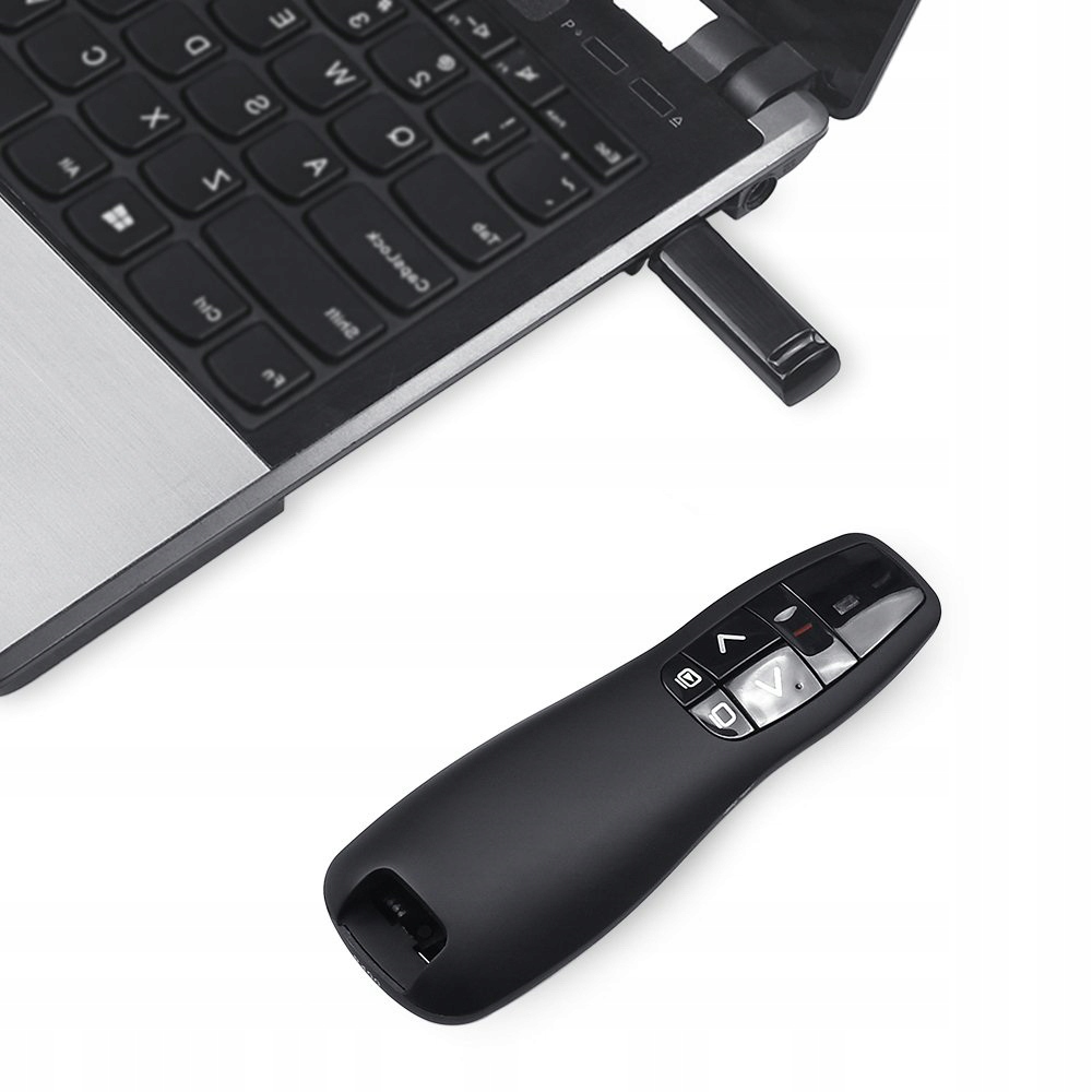 Новий спеціальний пульт дистанційного керування для презентацій Power Point (і інші подібні MS Office та подібні програми для iOS) з лазерною указкою. Маленький, добре лежить у руці, покритий нековзким матеріалом. Просто підключіть доданий USB-приймач (у формі флешки) до комп’ютера чи ноутбука та увімкніть пульт дистанційного керування. Ми можемо віддалено перемикати сторінки, слайди, призупиняти та запускати слайд-шоу.