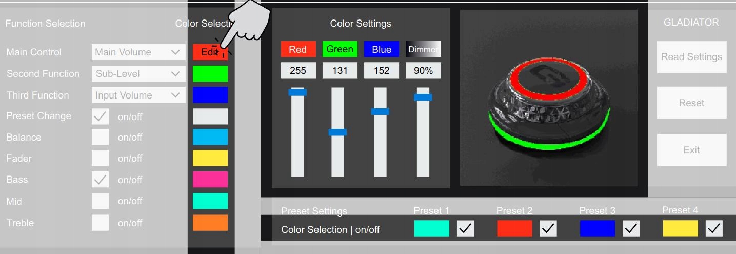 Колір RGB регулювання в контролері через програмне забезпечення Mosconi Gladen GUI! (з версії 3.53)