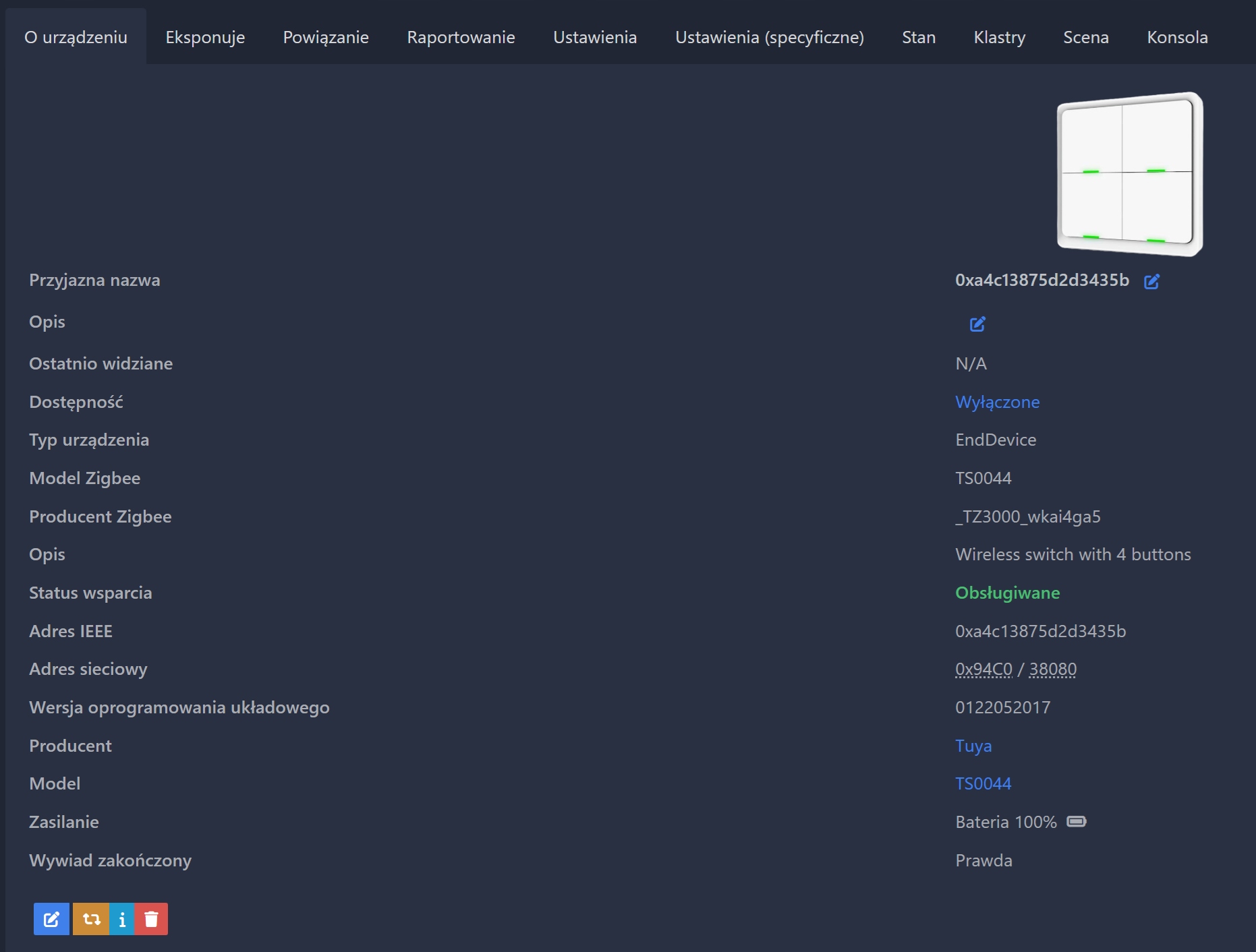 Просматривая «Пилотная кнопка Zigbee Tuya 4 каналы 12 сцен домашний помощник Zigbee2mqtt Zha», вы можете быть уверены, что данный товар из каталога «Исполнительные элементы» будет доставлен из Польши и проверен на целостность. В цене товара, указанной на сайте, учтена доставка из Польши. Внимание!!! Товары для Евросоюза, согласно законодательству стран Евросоюза, могут отличаться упаковкой или наполнением.