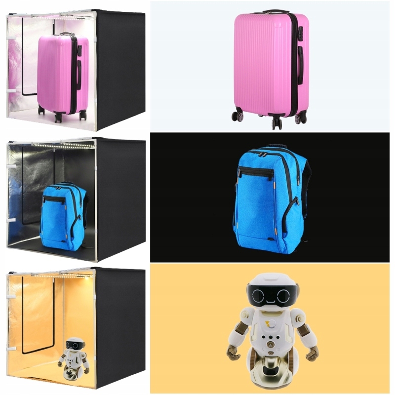 Намет має верхню кришку, що відкривається, тому ви також можете фотографувати з вище. Універсальні фони, що входять до набору, дозволять адаптувати кольори під конкретний виріб. Додаткові фони також доступні як аксесуари.