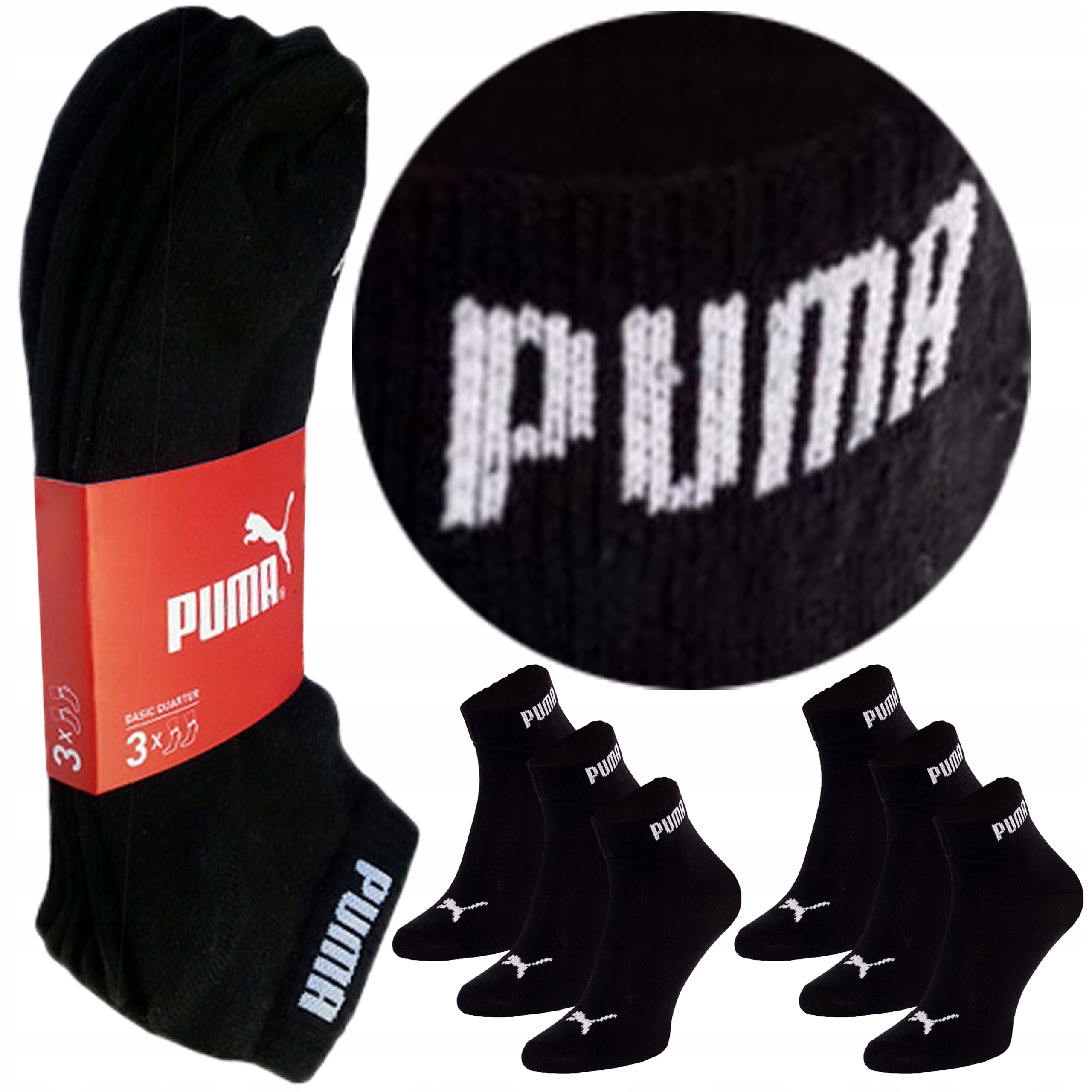 PUMA Skarpety Zakostki , CZARNE , 2x3pak , 43-46