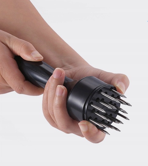 Пірсер для м’яса є ідеальною альтернативою старому доброму розм’якшувачу м’яса. Він не створює багато шуму, але також дає кращі результати завдяки шипи, які встромляються в м'ясо, роблячи його ніжним і танущим у роті. Це не вимагає застосування сили і не псує життя сусідів, як класичний товкач.